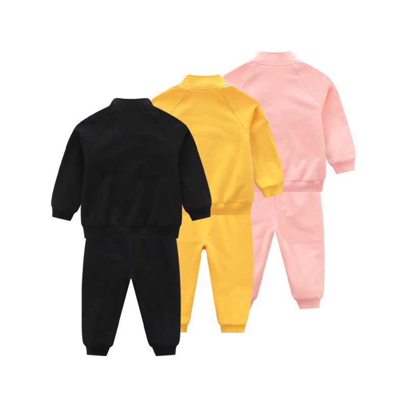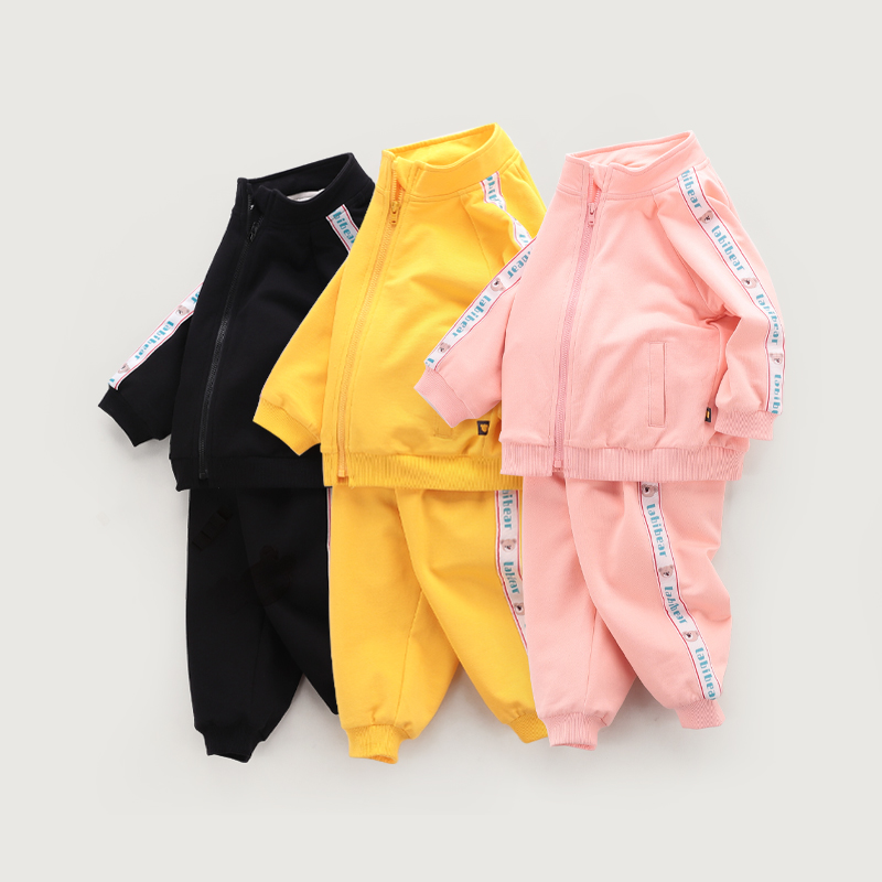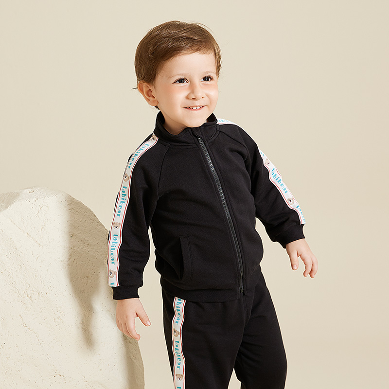 拉比专柜秋冬款针织加绒套装男女宝宝拉链前开柔软外穿运动服