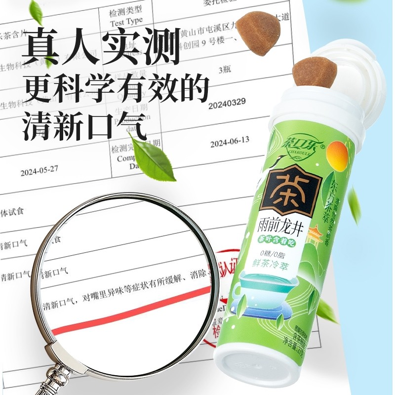 茶口乐荔枝龙井茶叶含片清新口气教师用嗓0糖0脂草本萃取茶含片