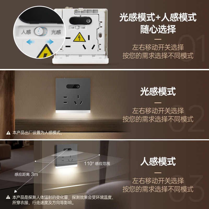 公牛人体感应地脚灯带五孔插座家用led小夜灯楼梯间过道走廊床头