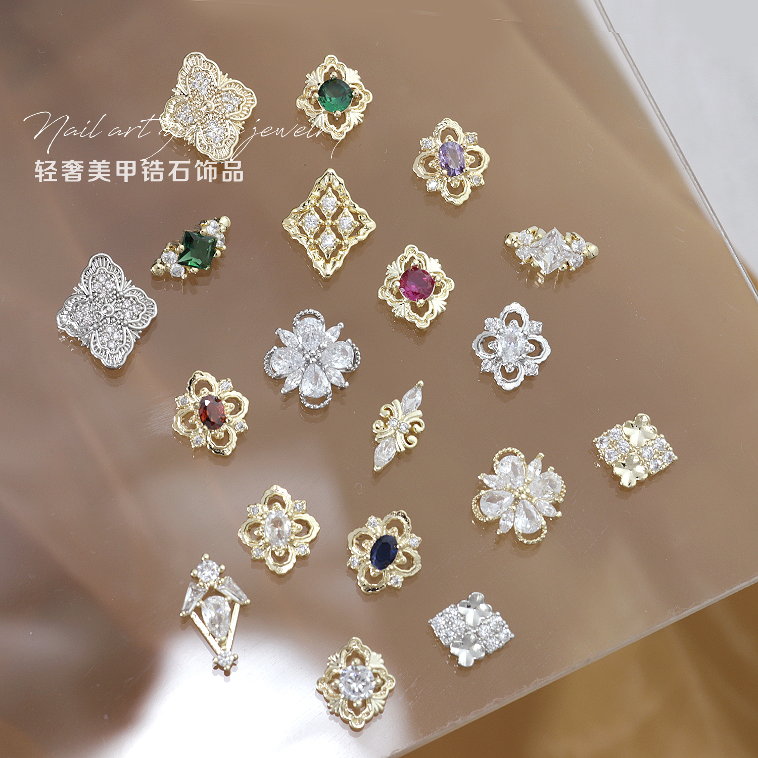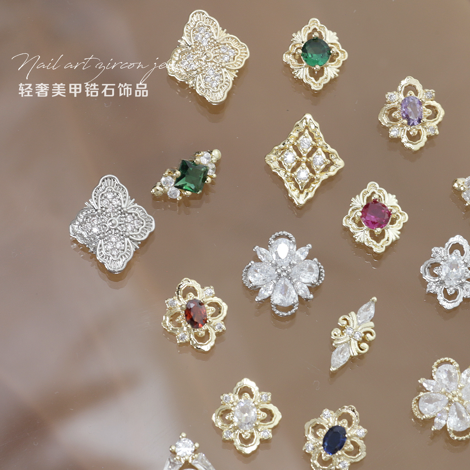 轻奢美甲复古锆石饰品金属嬛嬛护甲祖母绿指甲贴钻网红铜镶锆宫廷