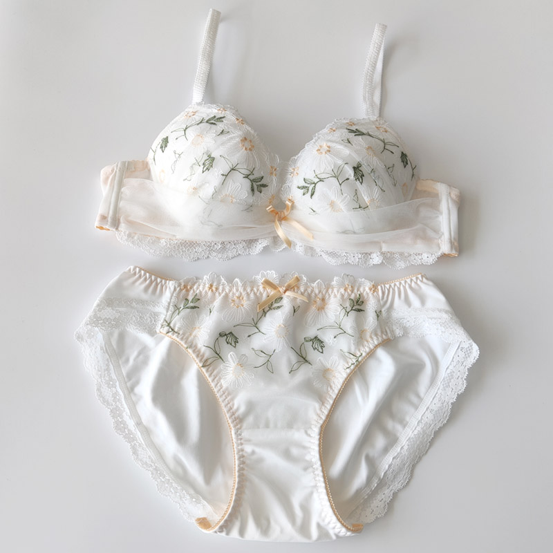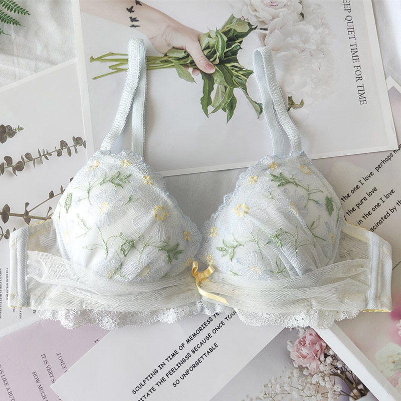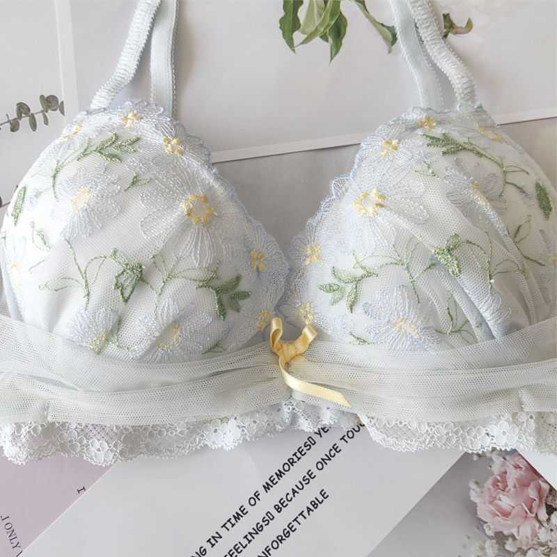 2025年夏季日系新款小清新花卉刺绣内衣低鸡心圆盘胸薄款文胸套装