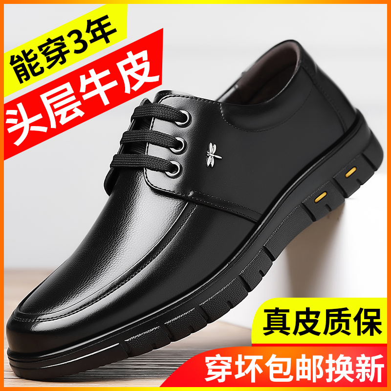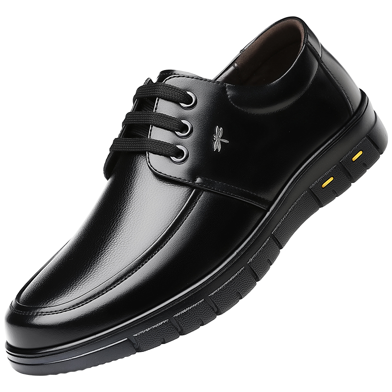 蜻蜓牌冬季加绒棉鞋男士皮鞋男真皮保暖中年人爸爸鞋子休闲中老年