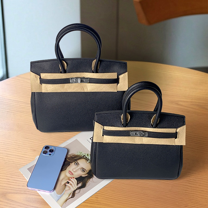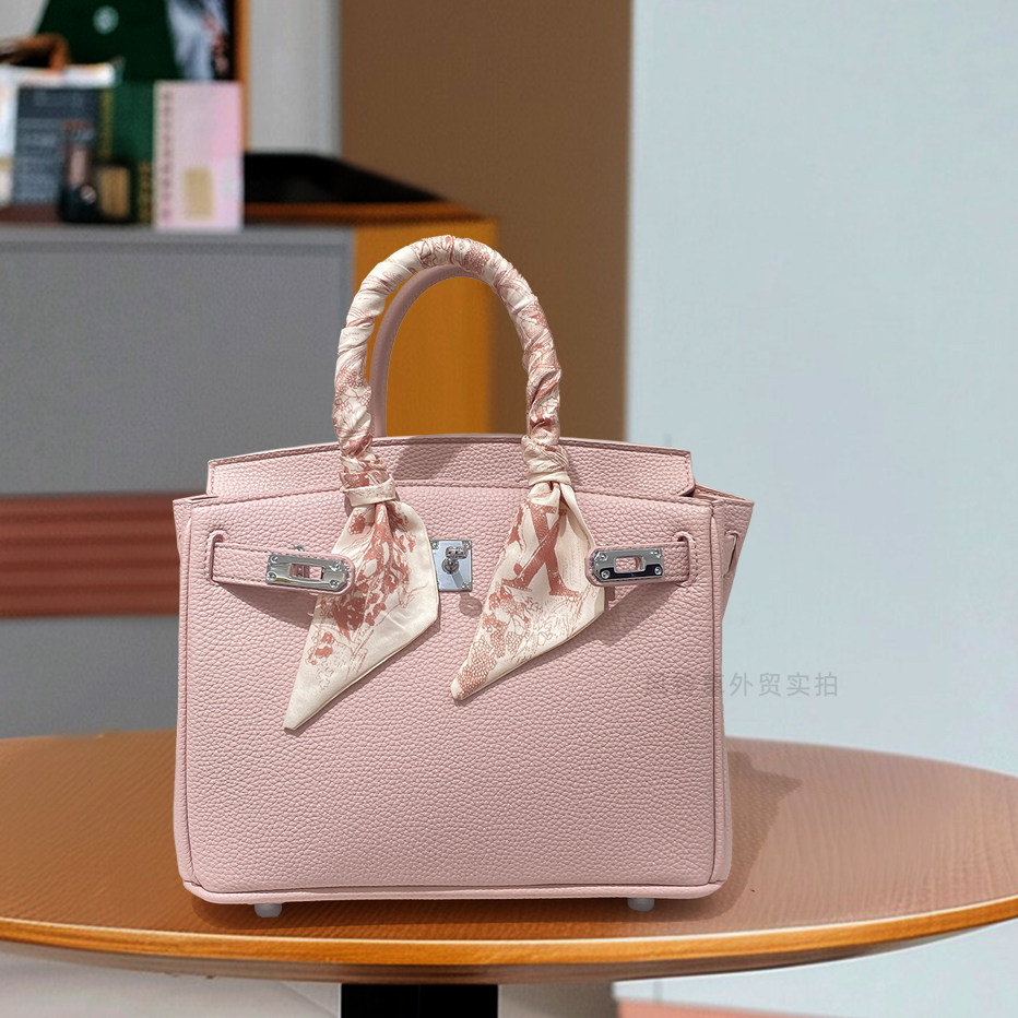 香港2025软皮质感铂金包手提包荔枝纹高级感凯莉包单肩斜挎女包