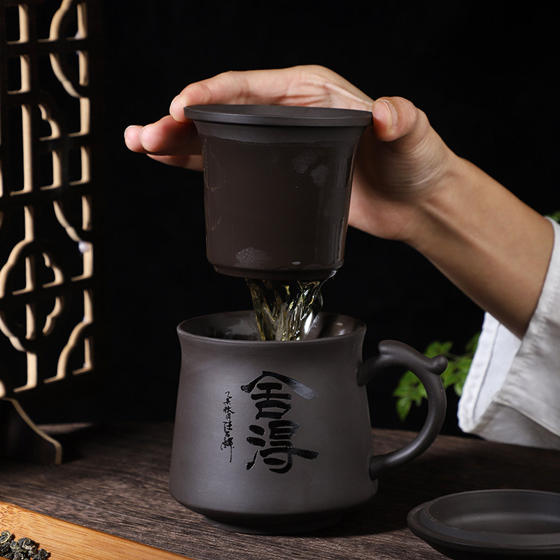 紫砂茶杯陶瓷大容量主人杯茶水分离办公杯泡茶杯水杯男家用马克杯