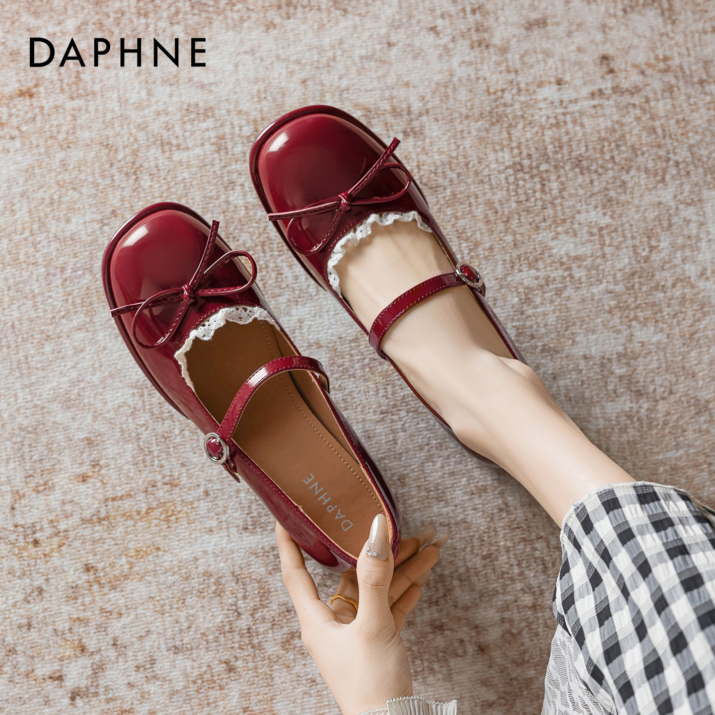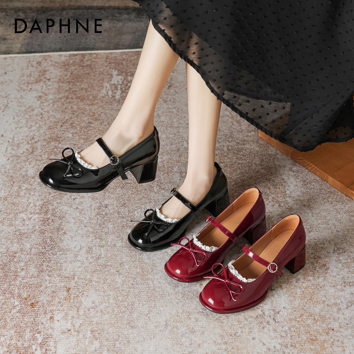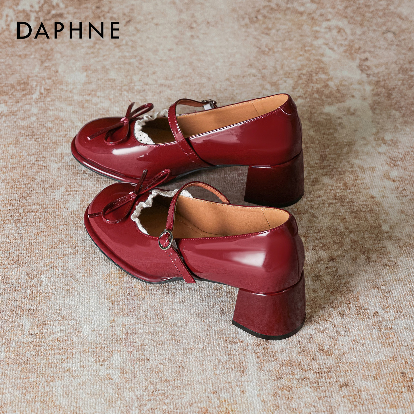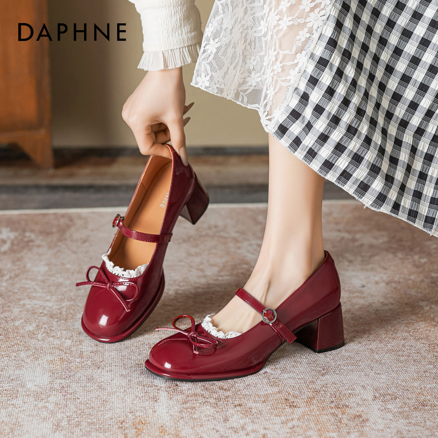 达芙妮红色单鞋女2026春季新款高跟粗跟新娘婚鞋法式玛丽珍小皮鞋
