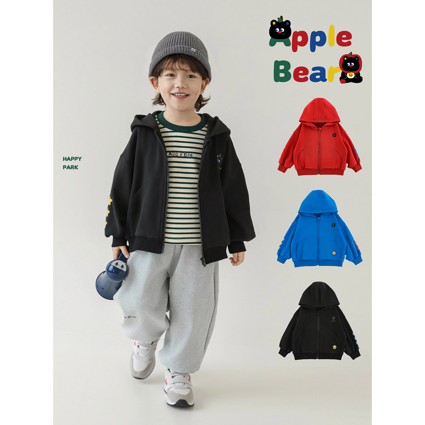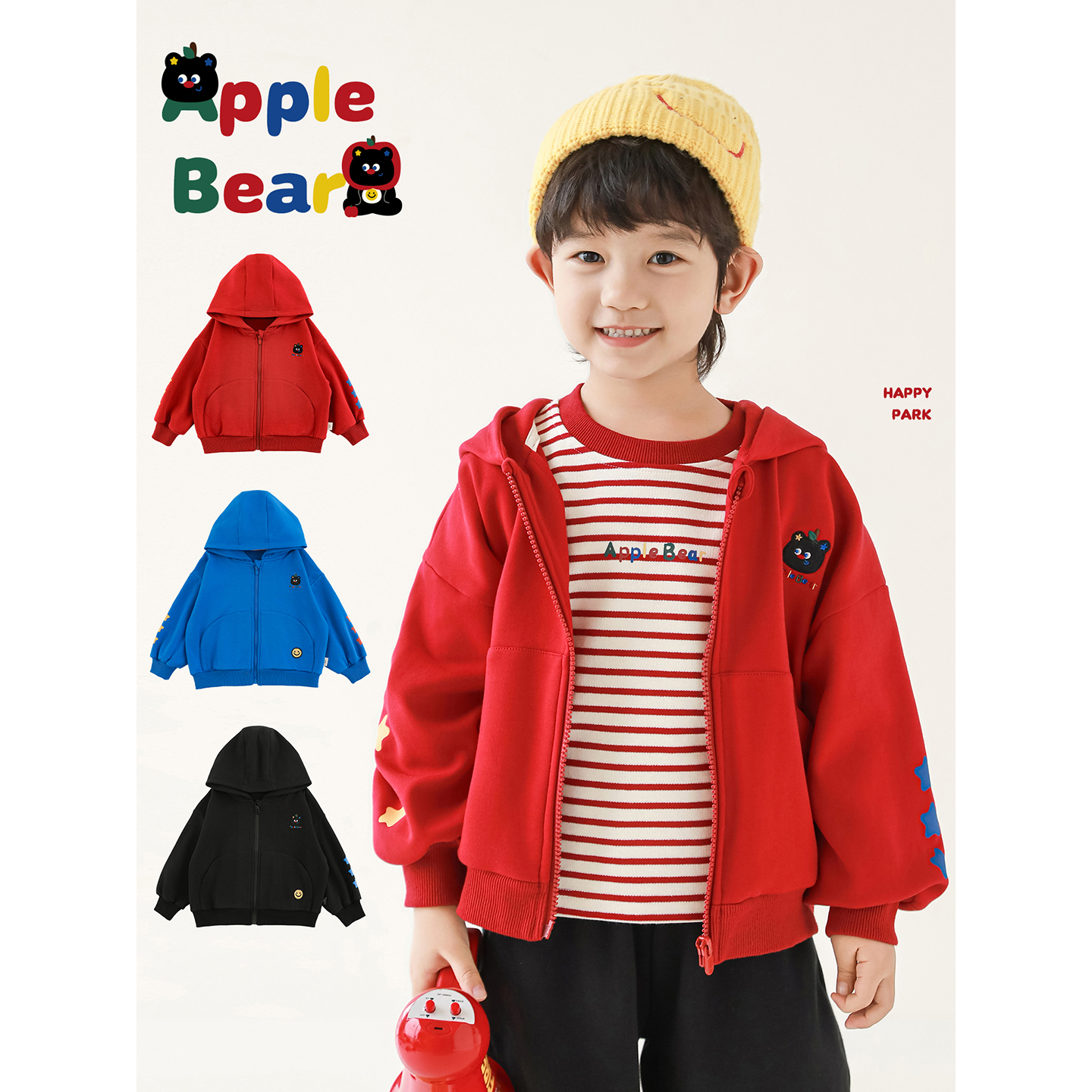 幼悠男童2025秋季新款连帽防风卡通外套休闲保暖束脚裤时尚套装潮
