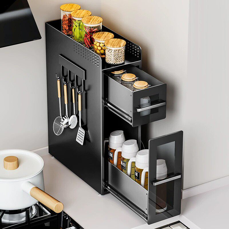 厨房转角调料品置物架台面窄边墙角收纳架橱柜侧面抽拉极窄储物柜