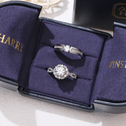 仿真奢华大气钻戒男女婚礼仪式婚戒一对道具活口结婚求婚群镶戒指