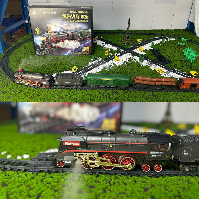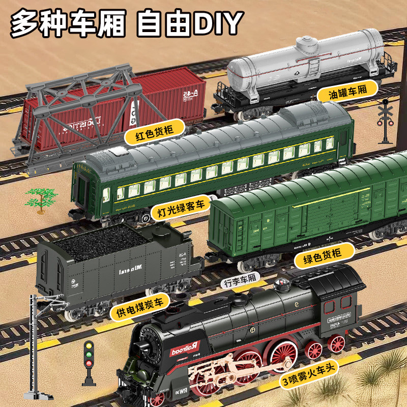 复古蒸汽小火车高铁动车模型遥控男孩玩具儿童绿皮轨道车益智玩具