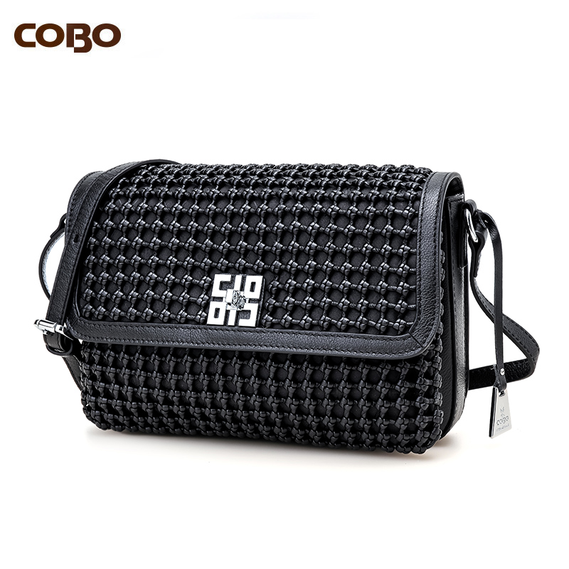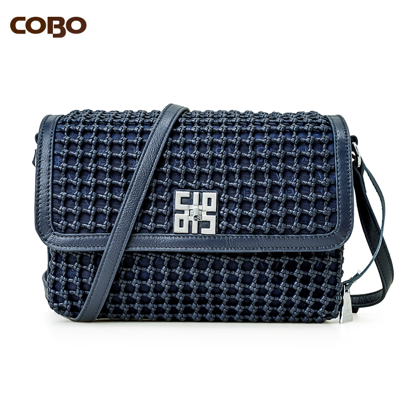 COBO/蔻尔宝头层牛皮手工编织单肩斜挎时尚休闲包