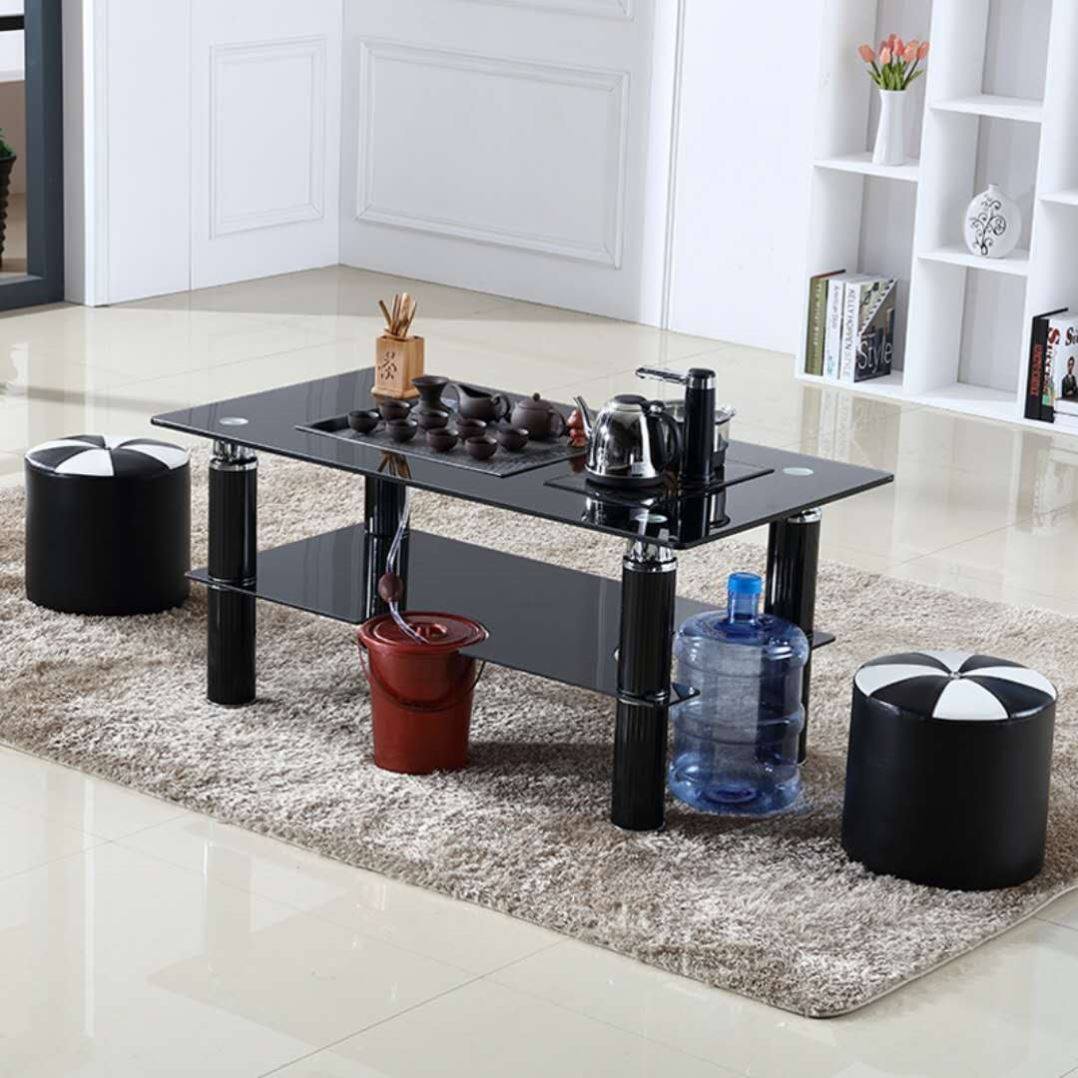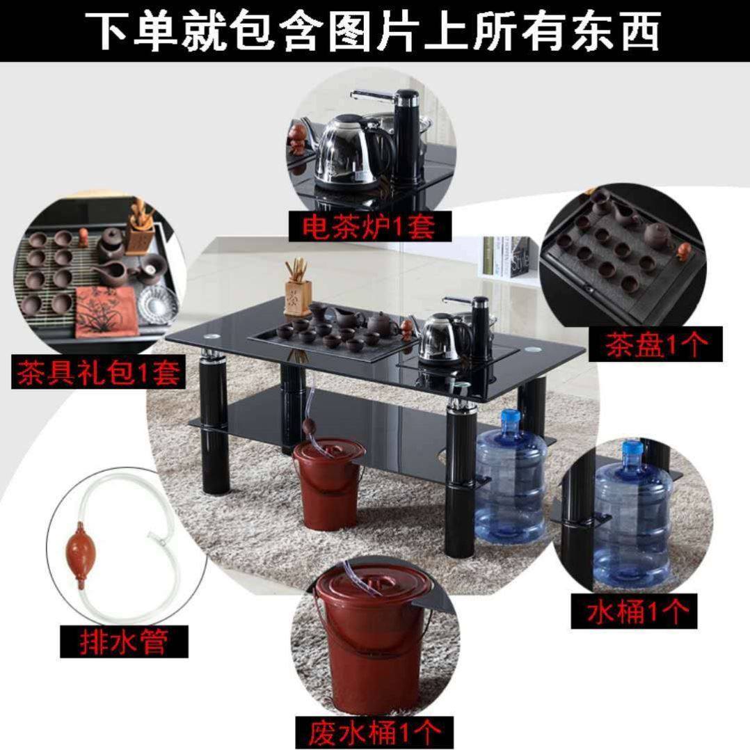 现代钢化玻璃功夫茶几简约茶几桌茶道桌子火烧石茶台自动上水茶桌