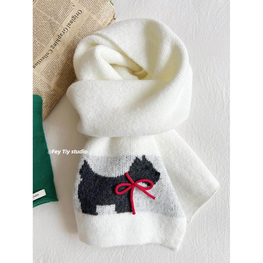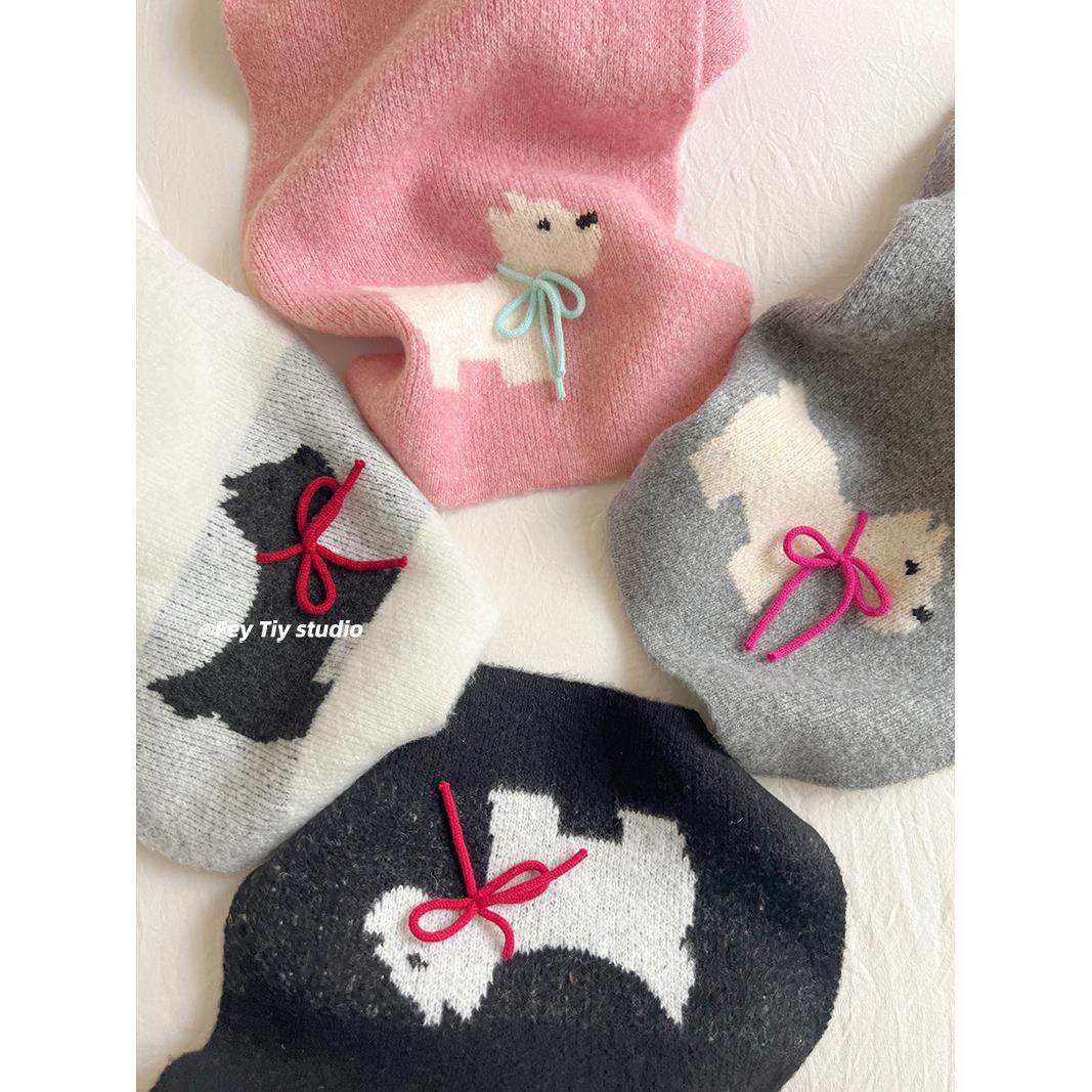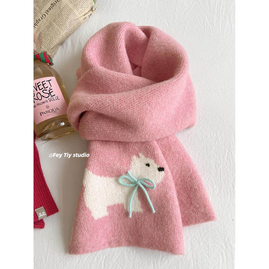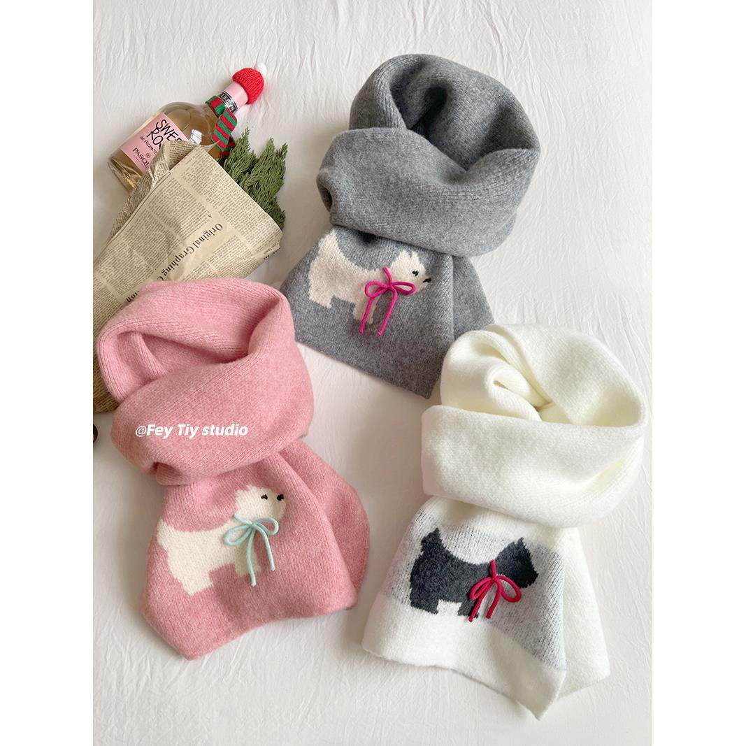 超美手工蝴蝶结 冬季限定款保暖围巾卡通针织毛线仿羊绒围脖韩版