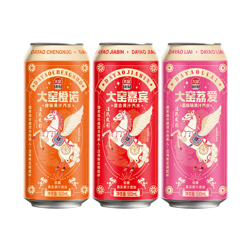 【吴京代言】大窑嘉宾橙诺汽水碳酸饮料易拉罐500mL*8整箱荔枝味