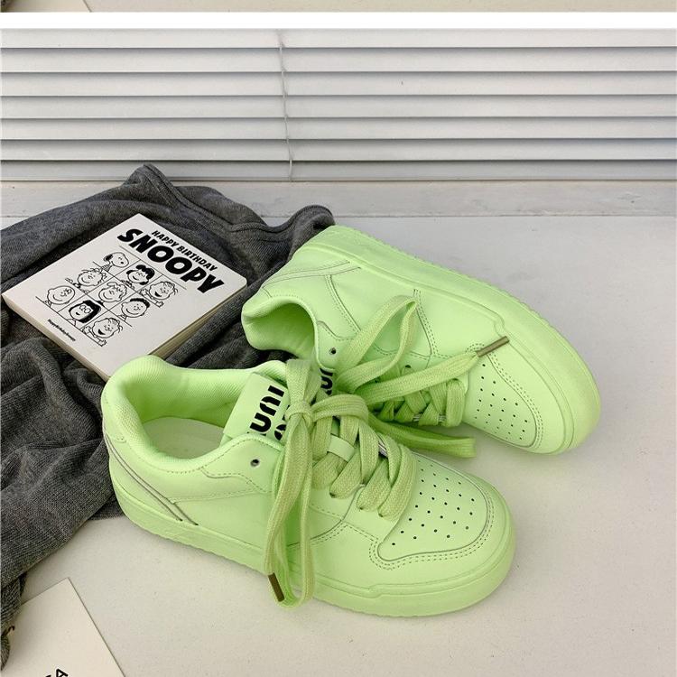 黄色休闲板鞋女2025新款春夏季透气圆头运动鞋显瘦厚底跑步单鞋款