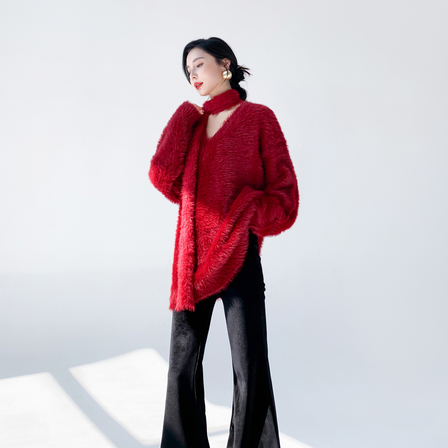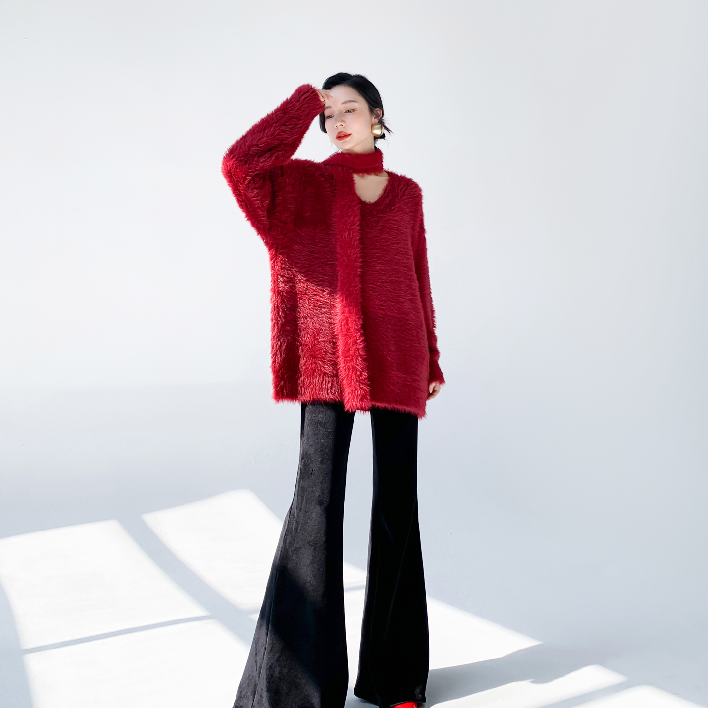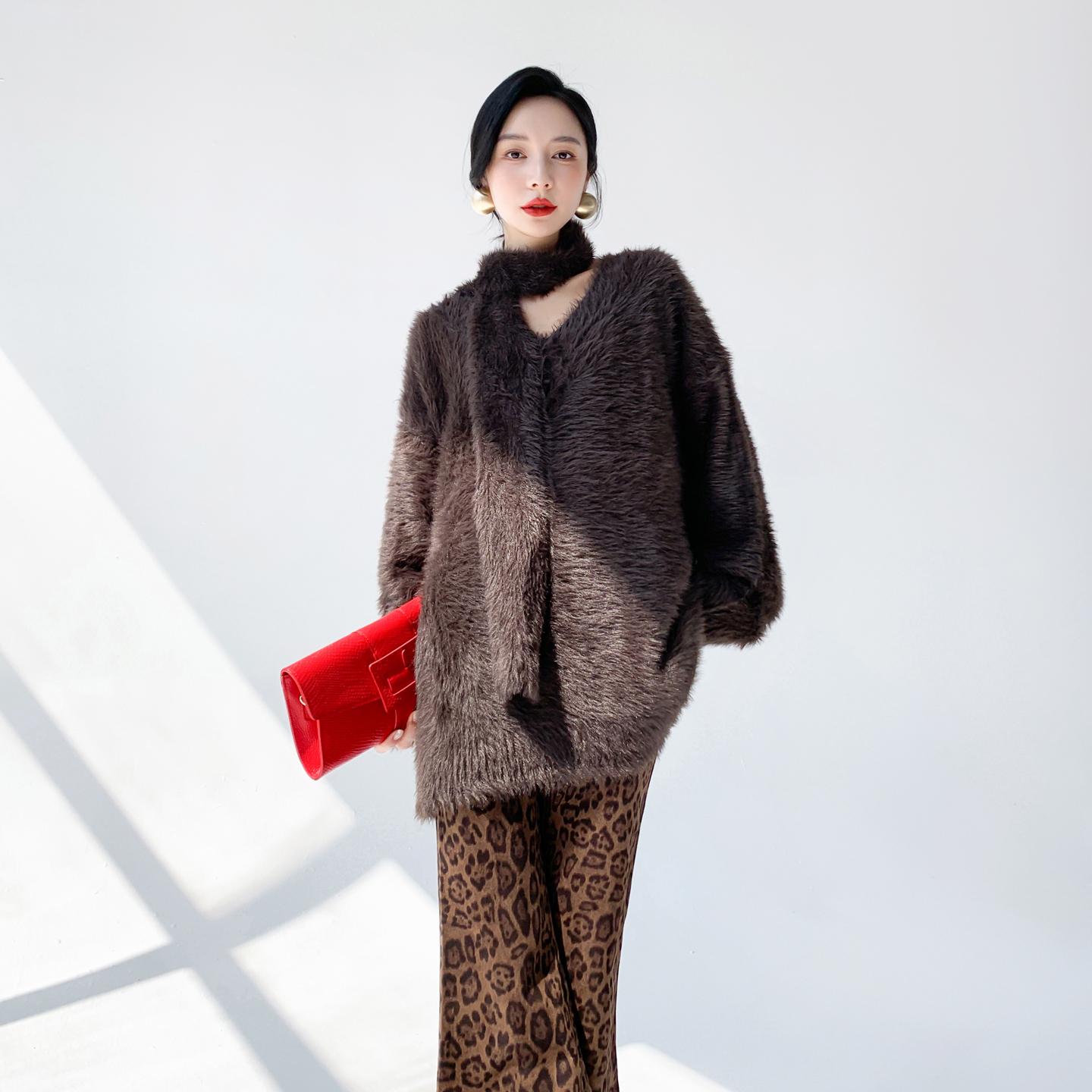 AKSAYA高级感韩系宽松慵懒风套头咖色毛衣中长款打底衫女秋冬新款