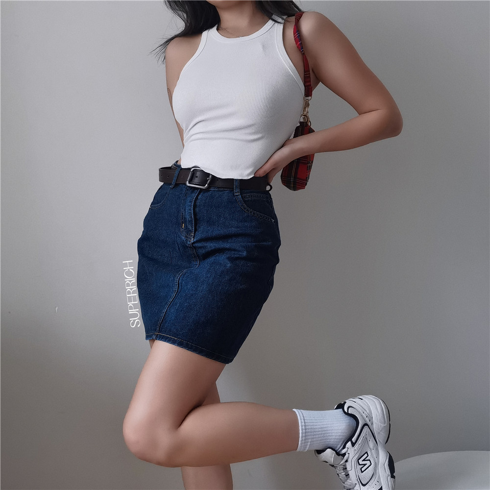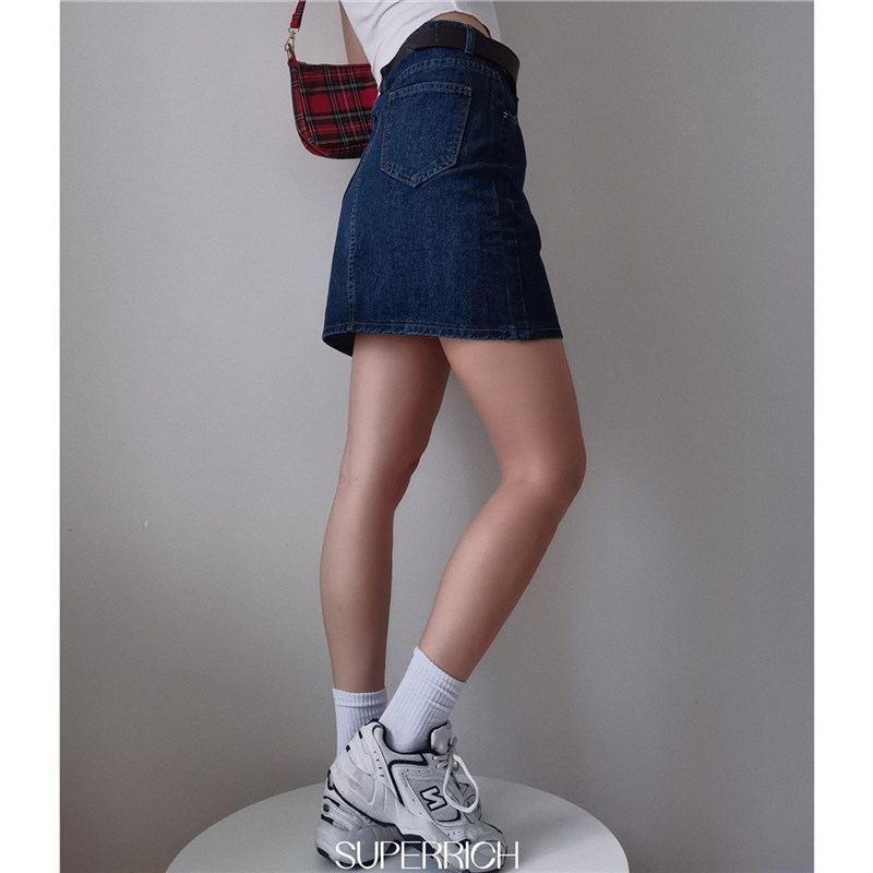 SUP美式夏季复古高腰原色牛仔深蓝色包臀半身裙A字裙小个子短裙女