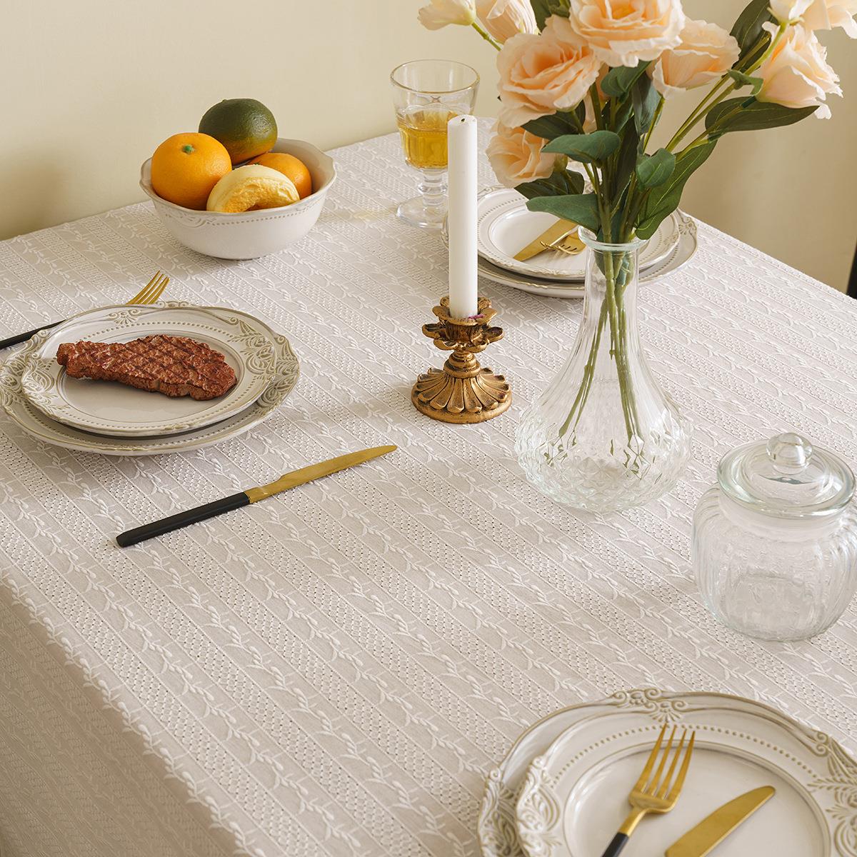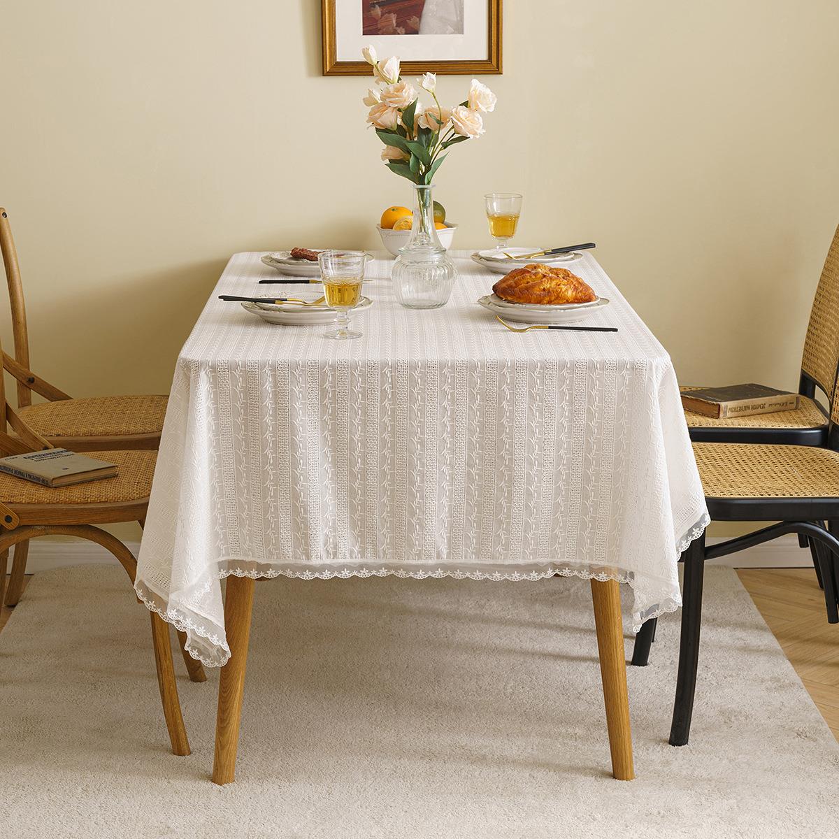 式绣花桌布棉麻布艺装饰台布茶几布长方形蕾丝盖巾拍摄背景桌布