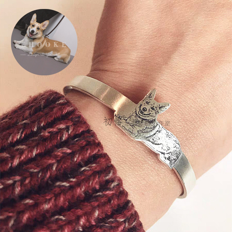 小猫小狗照片定制手镯纯银宝宝照宠物相片银饰手环原创纪念礼物