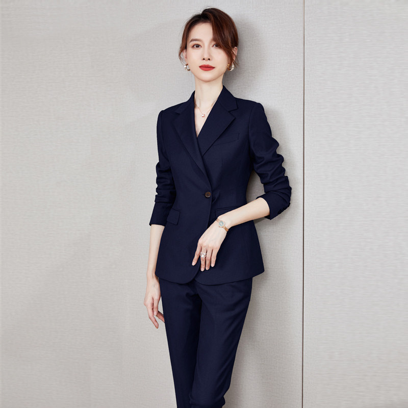 西装套装女春秋美容院工作服正装女职业时尚高定西服套装藏青黑