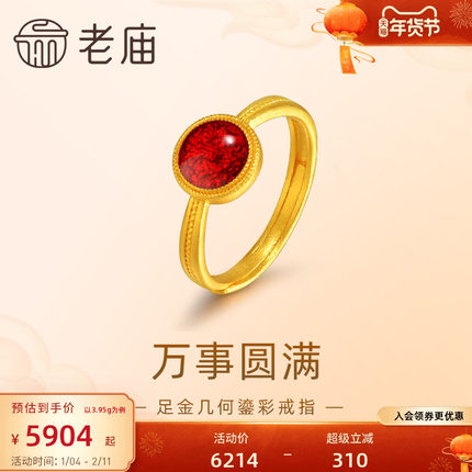 老庙黄金足金999古法戒指鎏彩着色明艳红色复古典雅时尚优雅气质