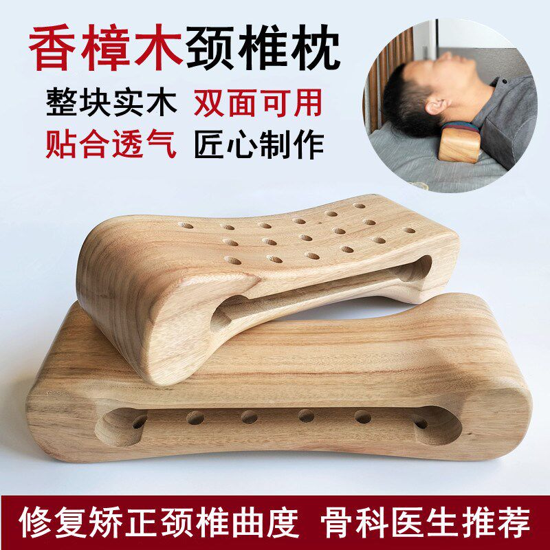 天然香樟木枕头颈椎枕腰枕牵引修复实木护颈枕保健枕富贵包理疗