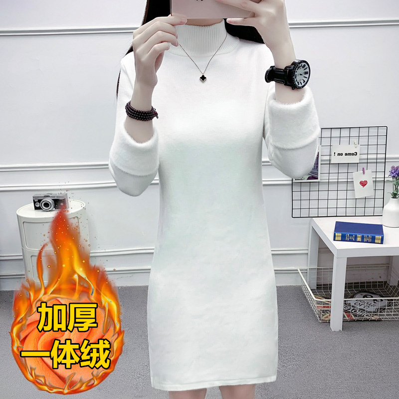 秋冬加厚保暖外穿毛衣女半高领内搭加绒打底衫中长款针织衫连衣裙