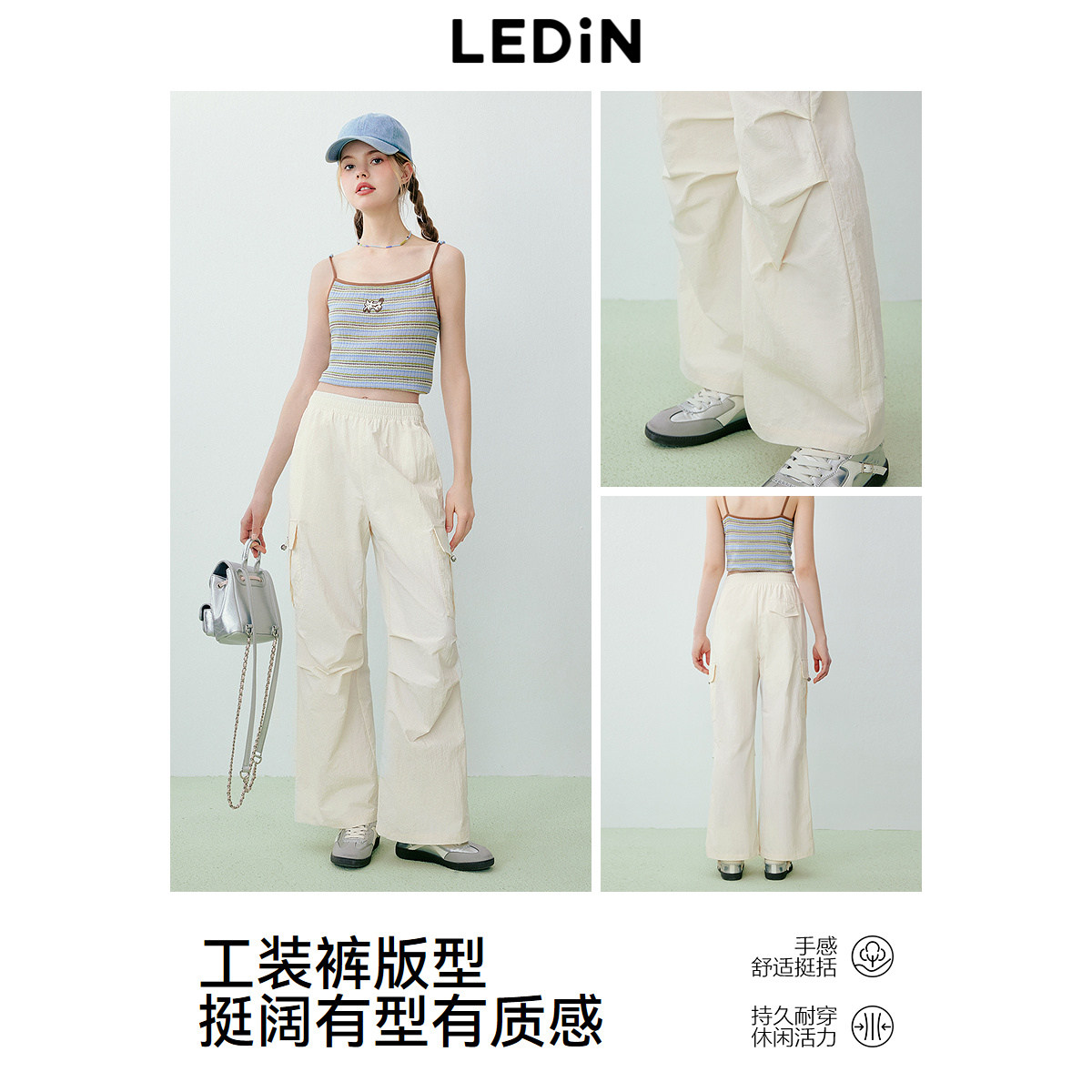 乐町防晒工装休闲裤夏季新款宽松直筒裤百搭户外运动阔腿裤子