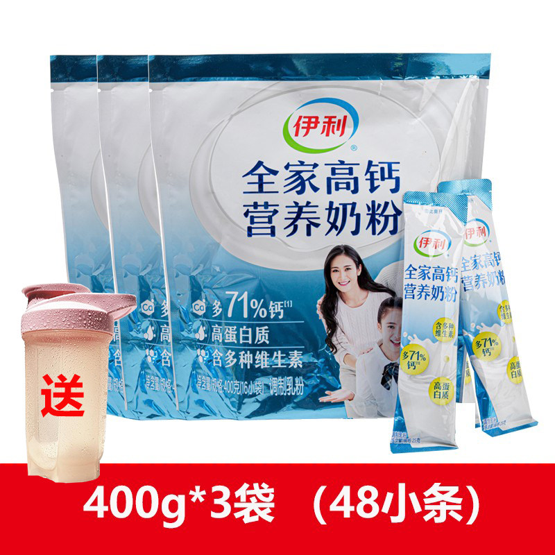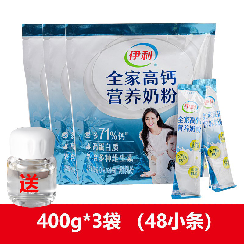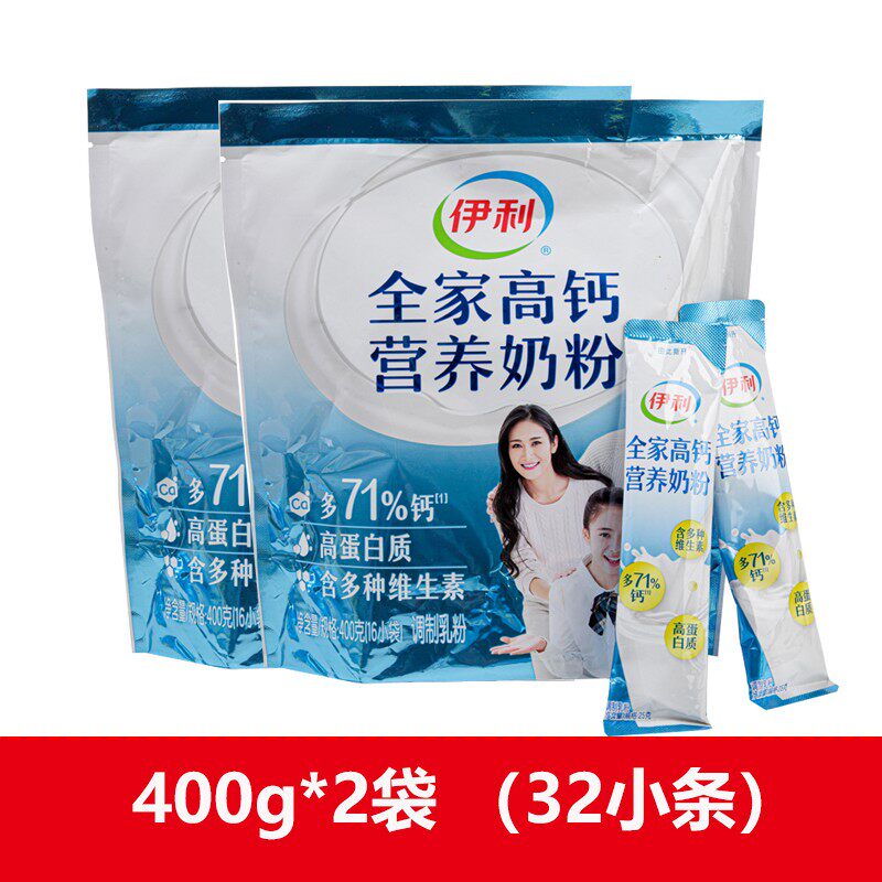 伊利全家高钙营养奶粉400g袋装16小包成人早餐奶粉全家型冲泡牛奶