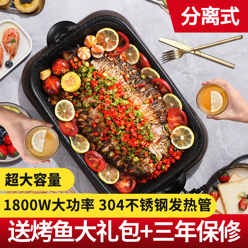 纸包鱼专用锅商用长方形纸上烤鱼炉家用多功能火锅烤肉电烤盘不粘