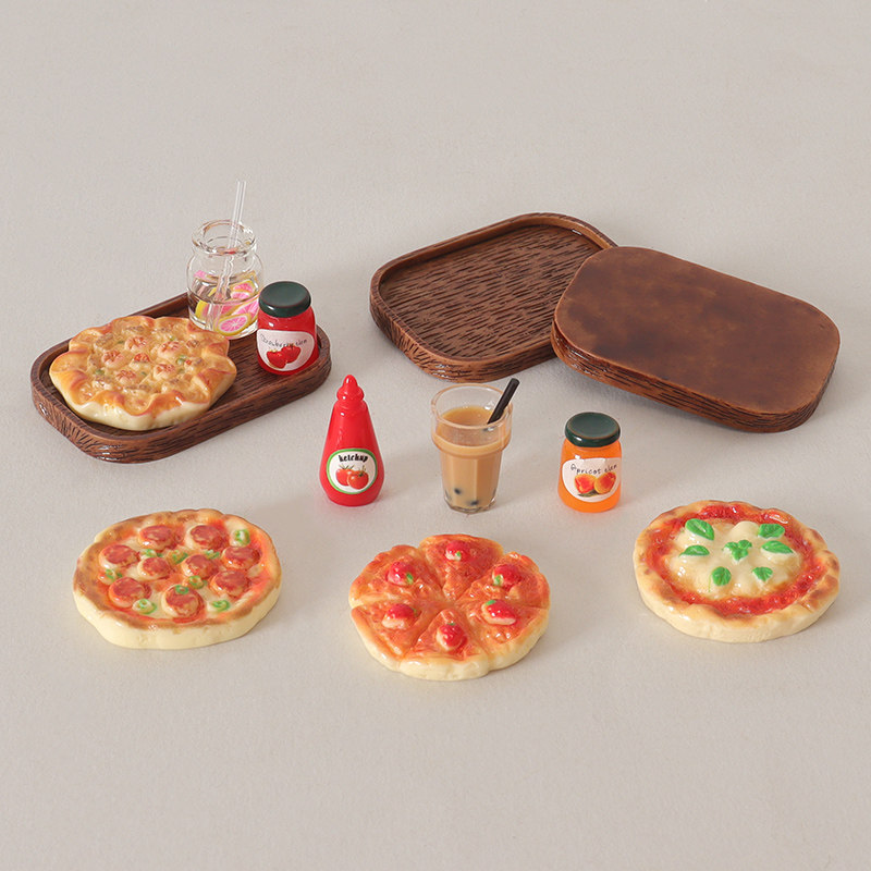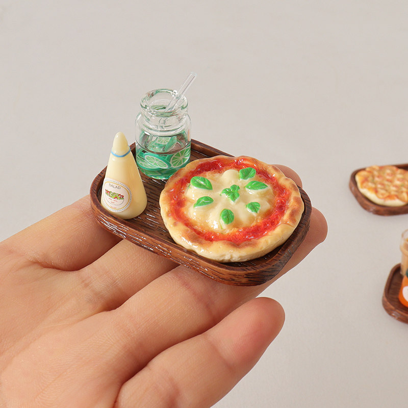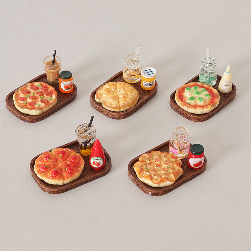 娃娃屋仿真微缩迷你食玩披萨果汁奶茶果酱托盘模型过家家场景配件
