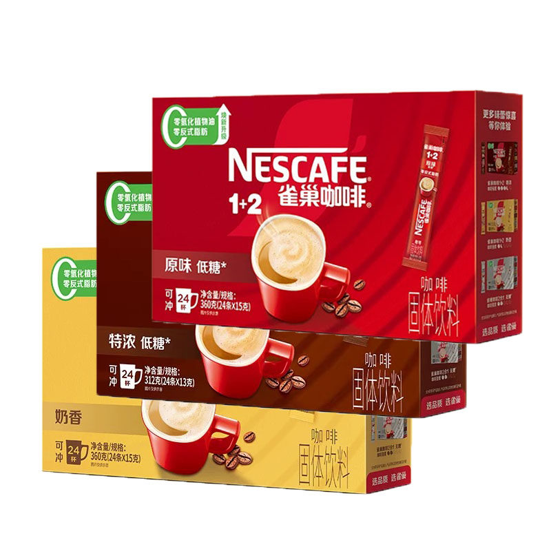 雀巢咖啡1+2原味奶香特浓三合一拿铁速溶咖啡30条礼盒送礼