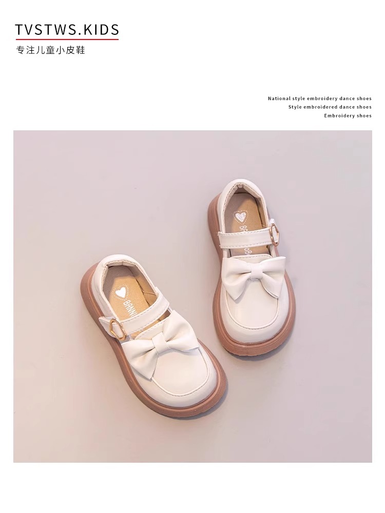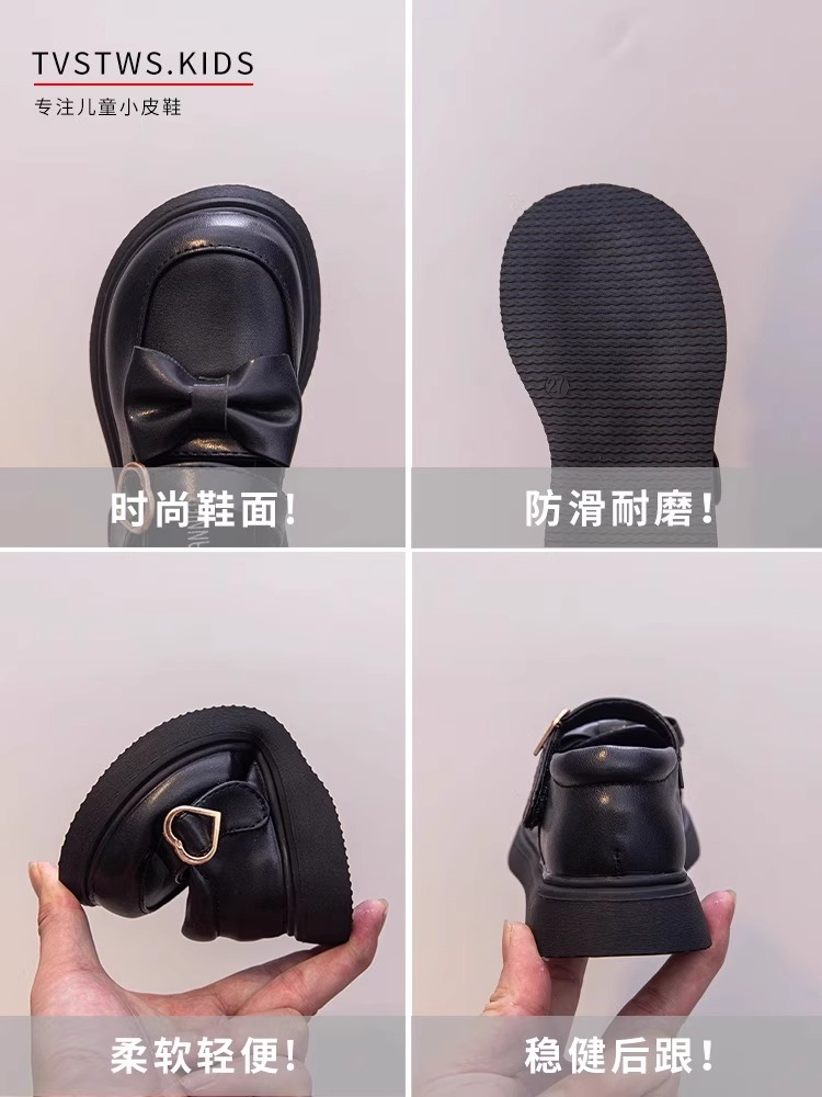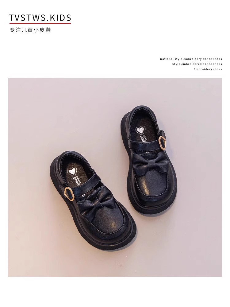 真皮女童黑色小皮鞋2025春秋季新款软底公主蝴蝶结校园小学生皮鞋