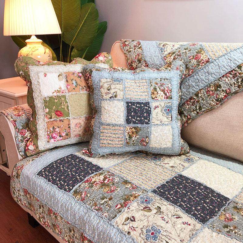 田园全棉布艺拼布四季通用加厚纯棉坐垫拼接防滑沙发垫高档柔软夏