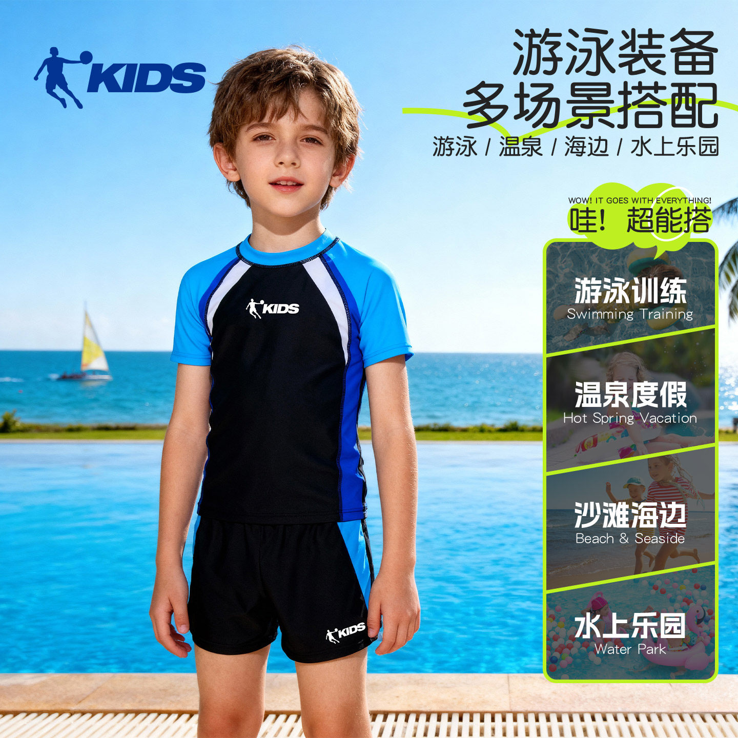乔丹儿童泳衣男童2025新款中大童游泳衣分体防晒透气速干游泳套装