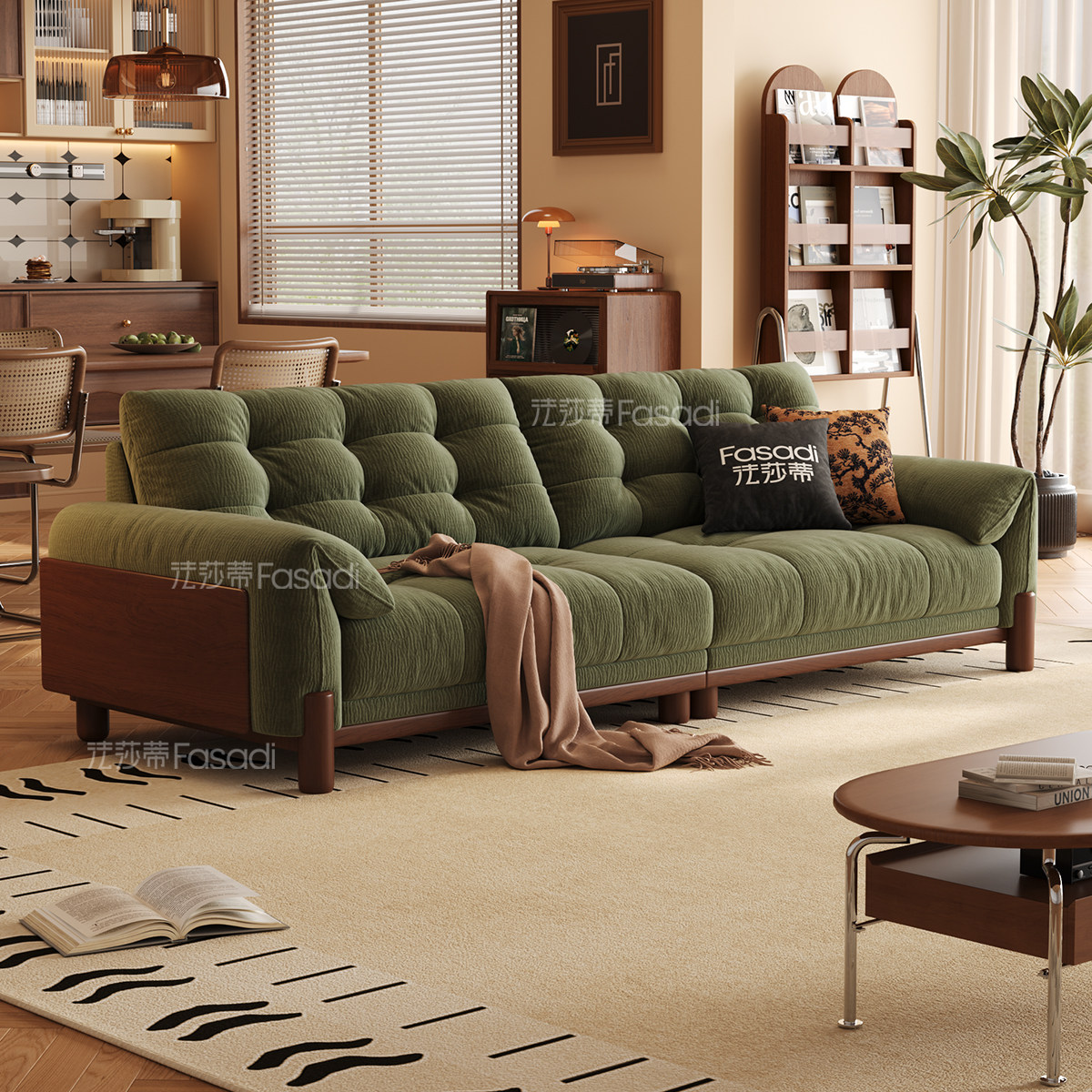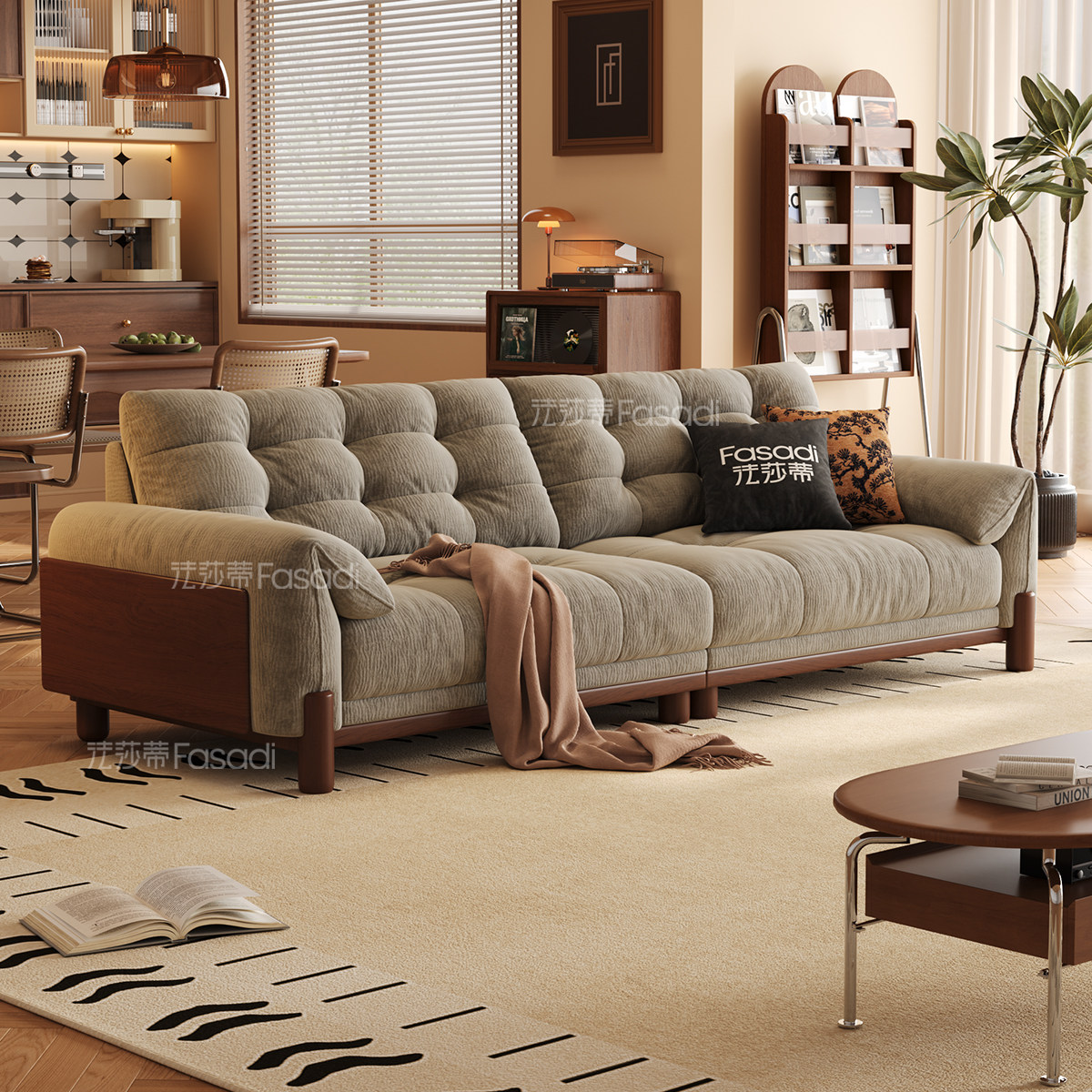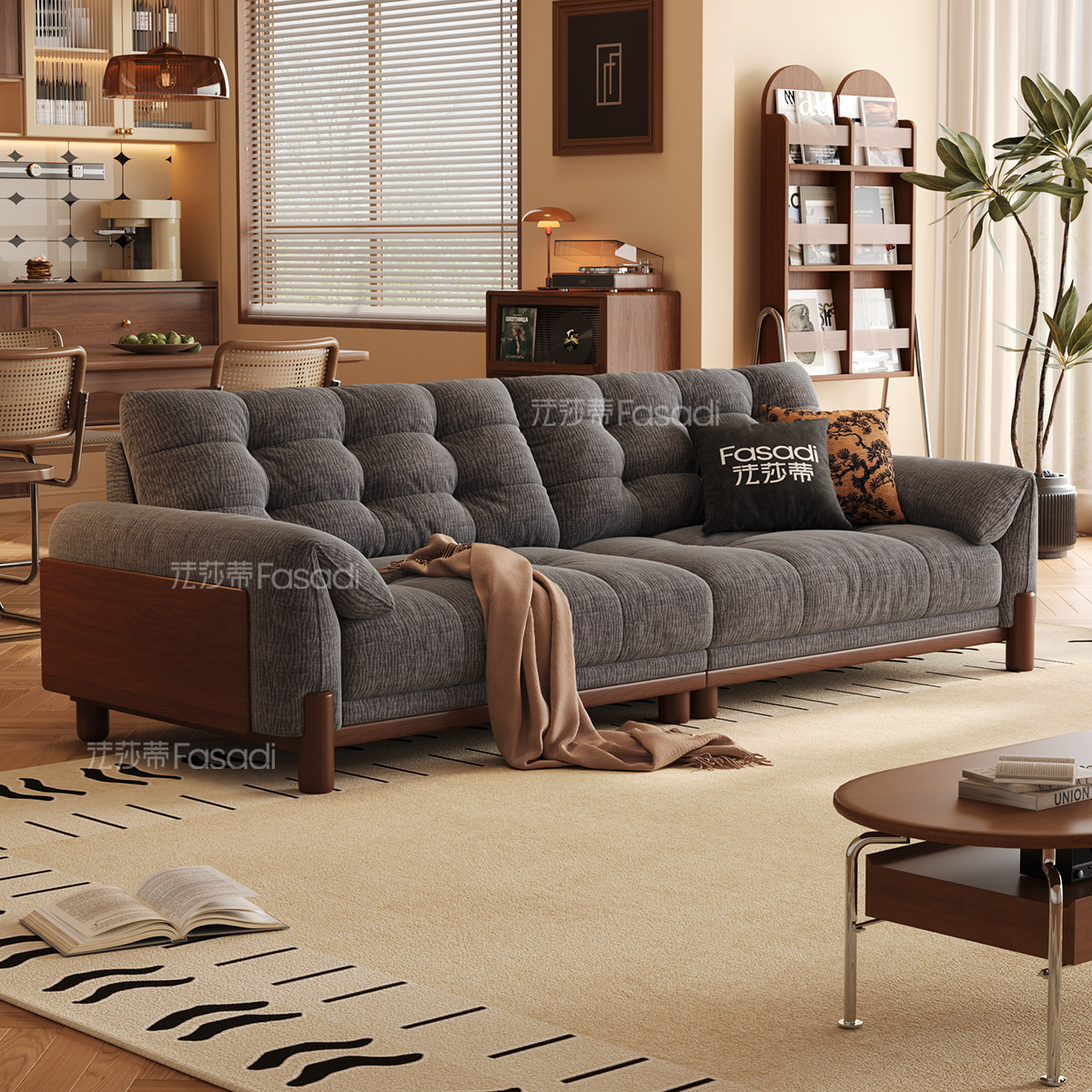 法莎蒂云栖棠中古风实木布艺沙发小户型客厅简约可拆洗雪尼尔沙发