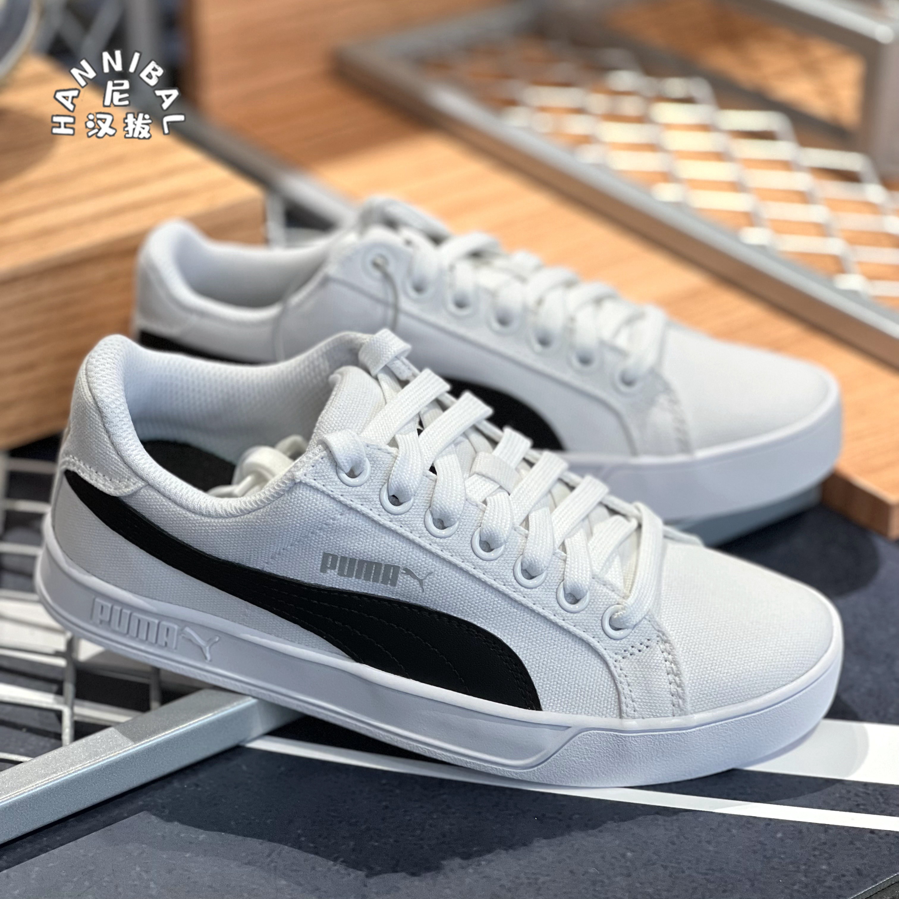 PUMA彪马 男女帆布鞋 Smash黑白蓝色春夏低帮复古休闲板鞋359914