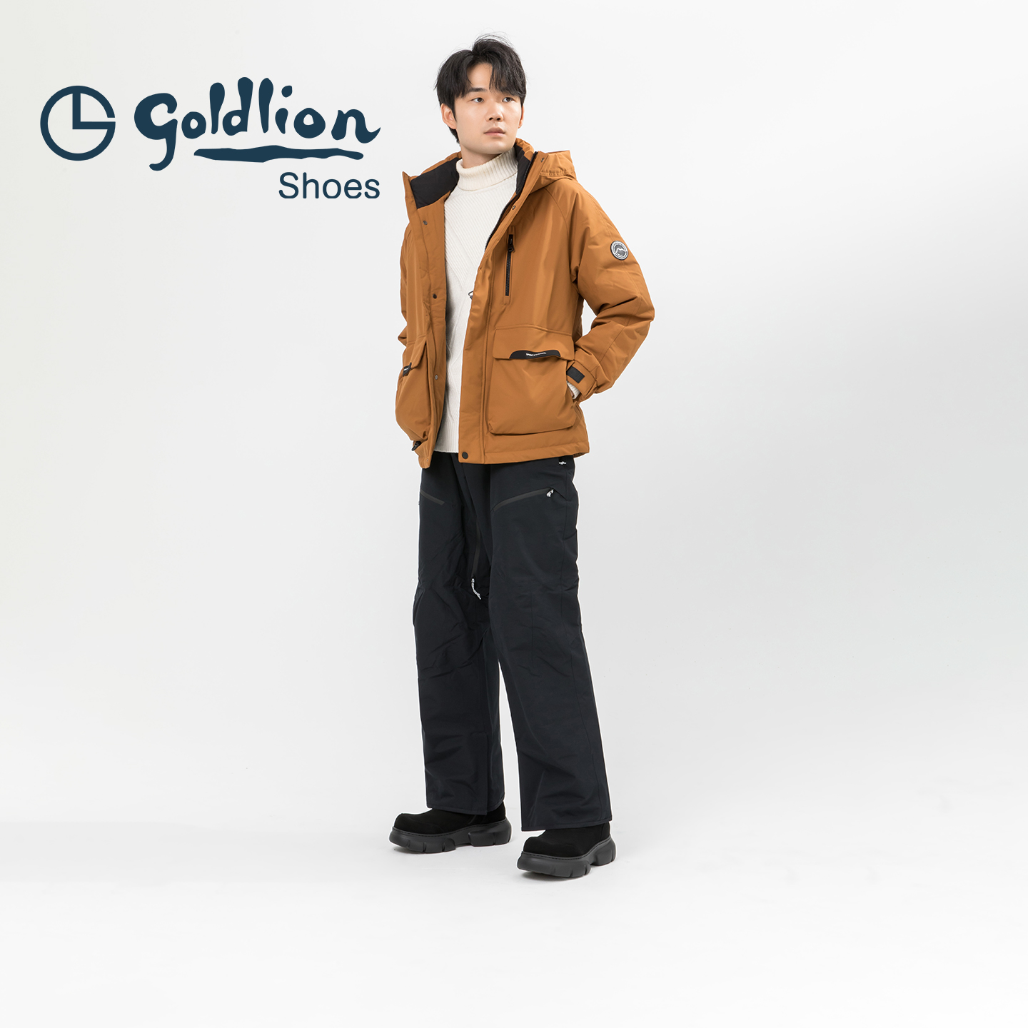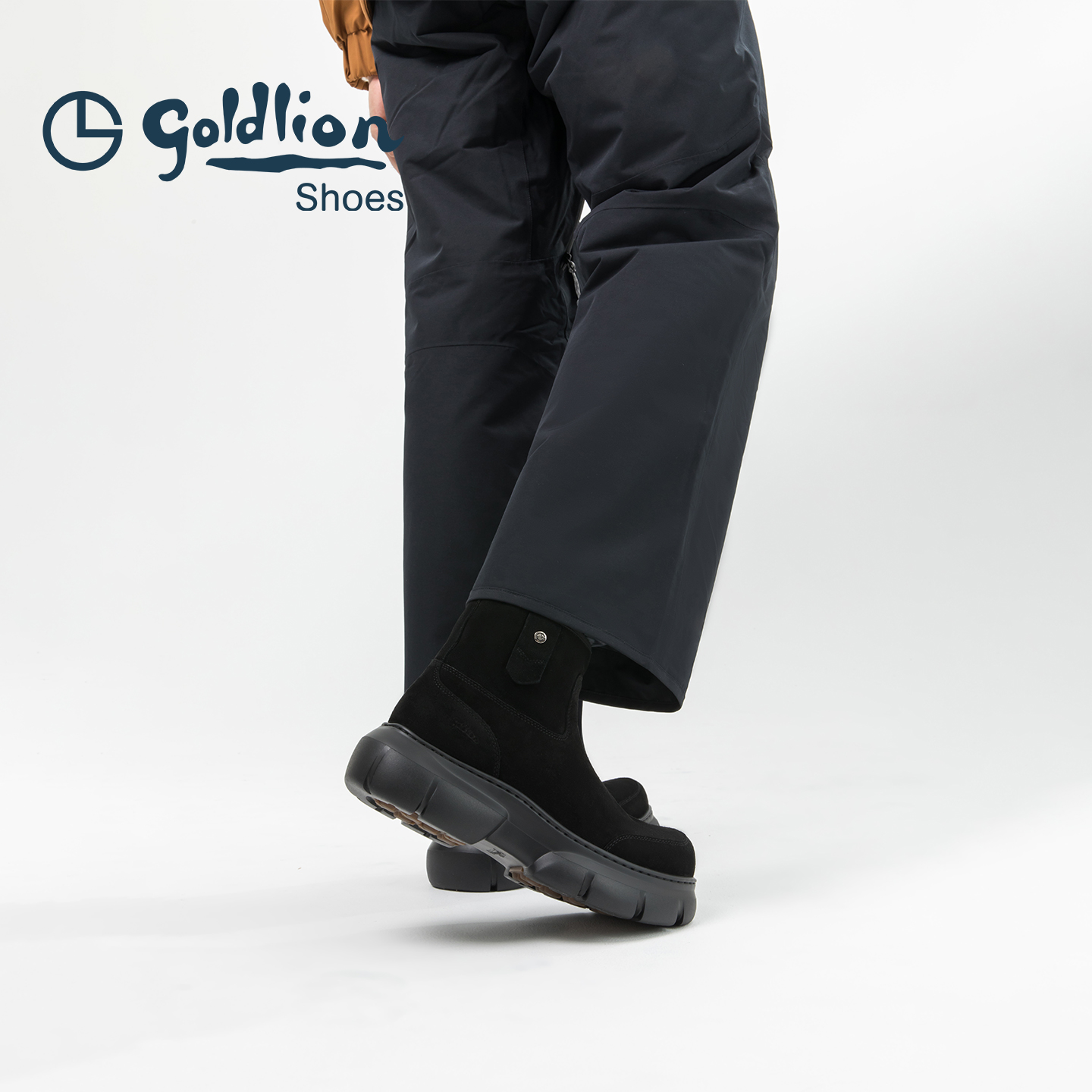 Goldlion男款工装靴子2025冬季新款加绒厚底侧拉链潮酷黑色棉鞋