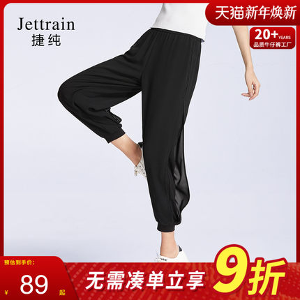 捷纯束脚雪纺灯笼裤 女夏季超薄款黑色宽松九分松紧腰大码休闲裤