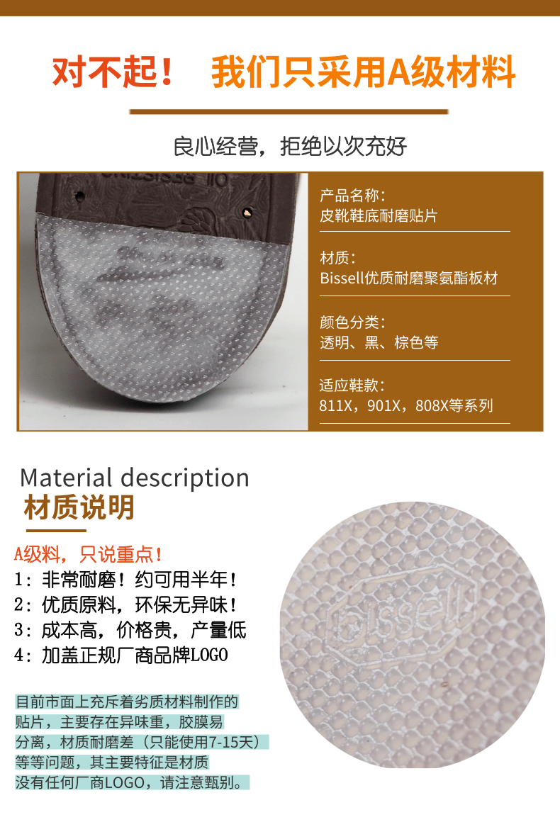 鞋底耐磨贴Redwing811181138089013红翼小白贝克曼防磨损贴片透明