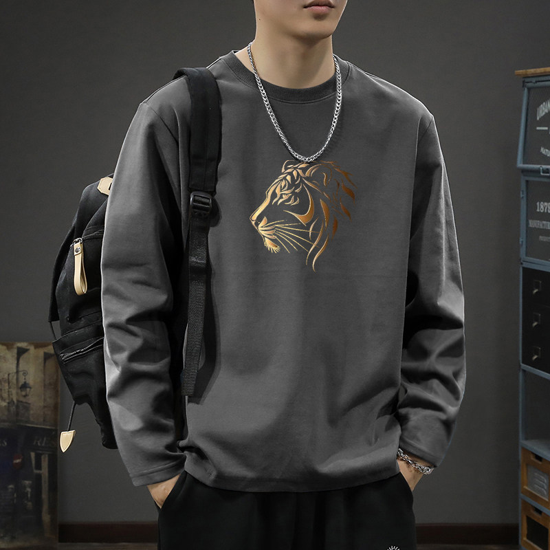 长袖T恤男2025秋季新款重磅纯棉内搭薄款圆领打底大码休闲体恤衫