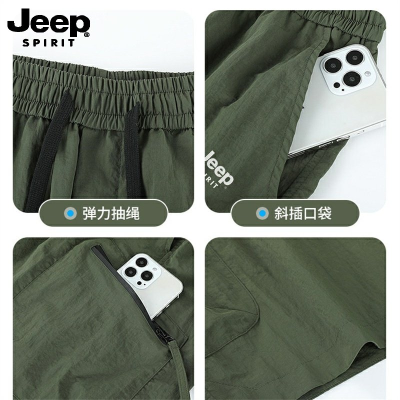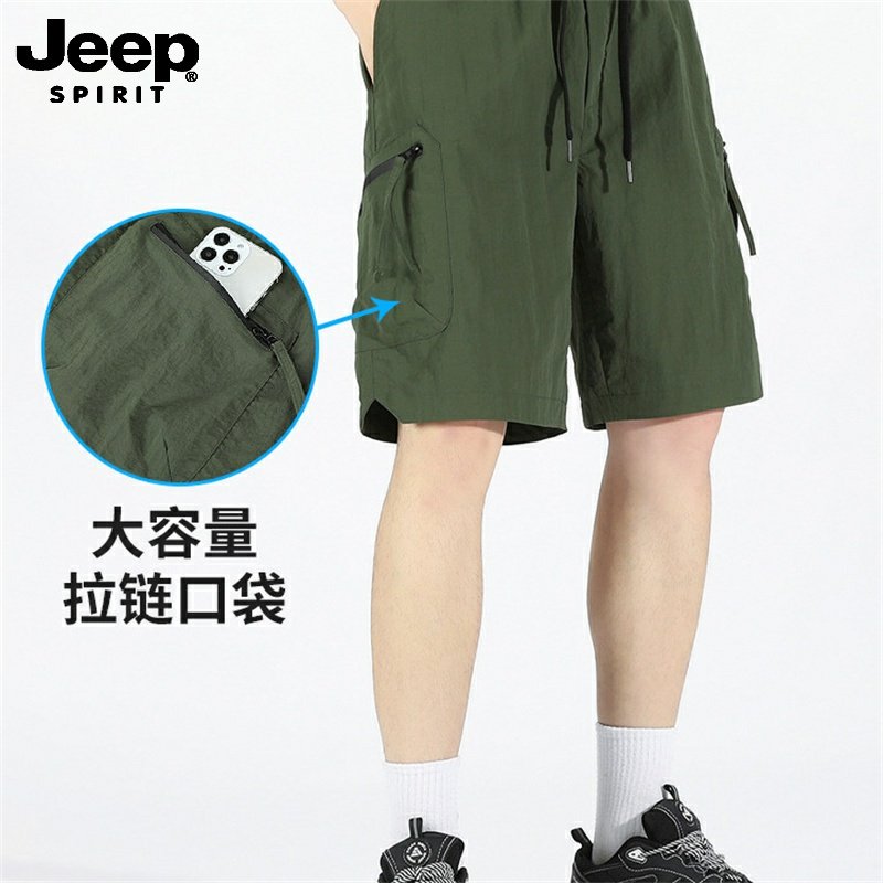 吉普冰丝男士短裤夏季新款男装运动五分裤宽松工装裤子男生休闲裤