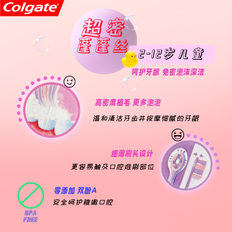 高露洁 超密蓬蓬丝2-12岁 儿童超细软毛牙刷花瓣刷头泡沫清洁护龈