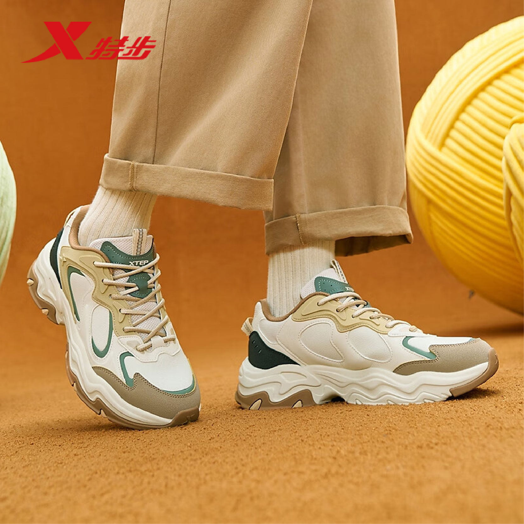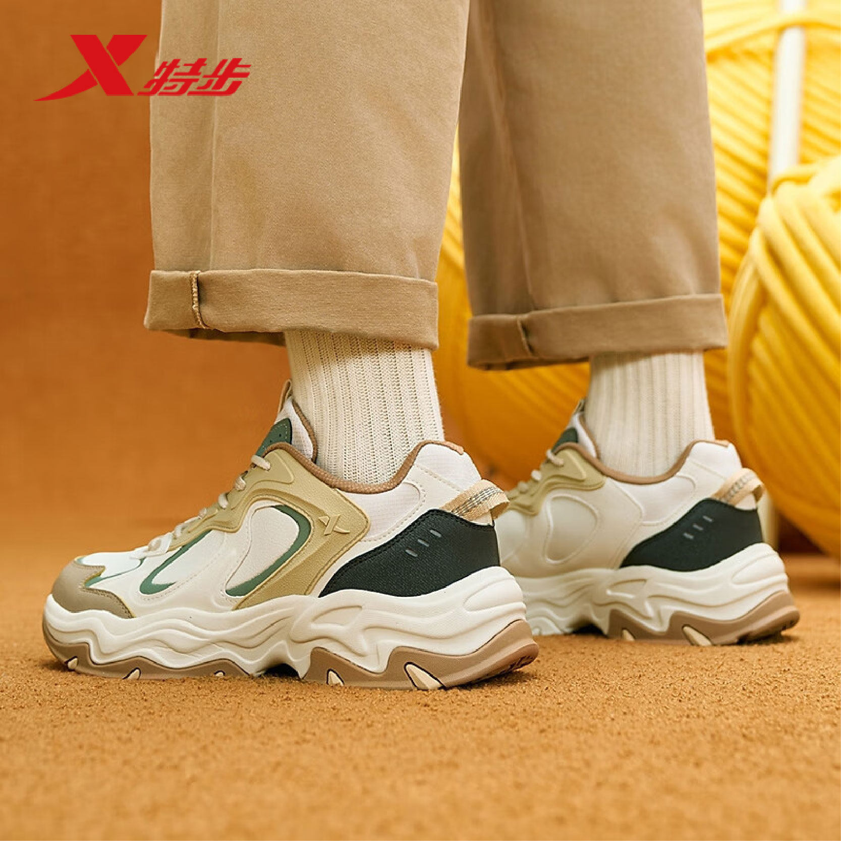 特步男鞋星野户外运动鞋2025冬季新款皮面休闲老爹鞋975419320001