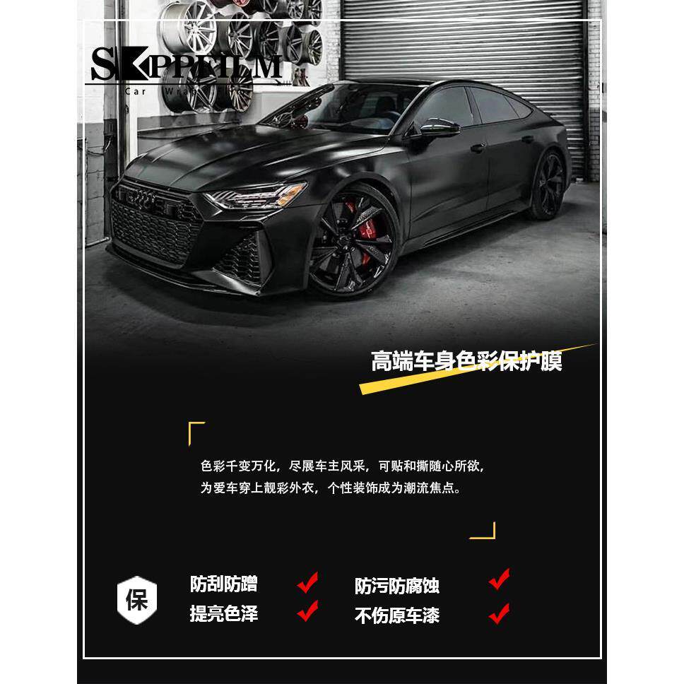 色卡汽车改色膜 铸造级超哑闪电绸缎陶瓷磨砂黑武士全车身贴膜