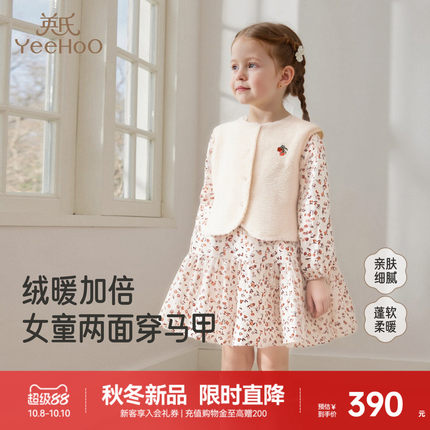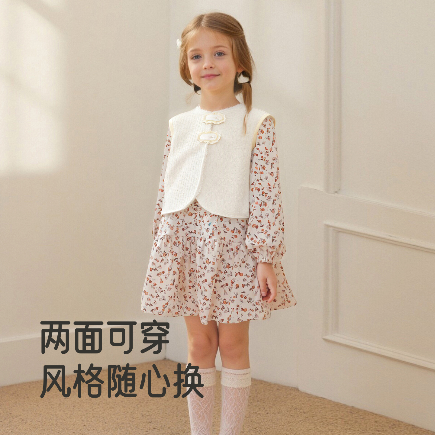 【商场同款】英氏女童针织马甲外穿背心春秋加厚洋气加绒甜美开衫