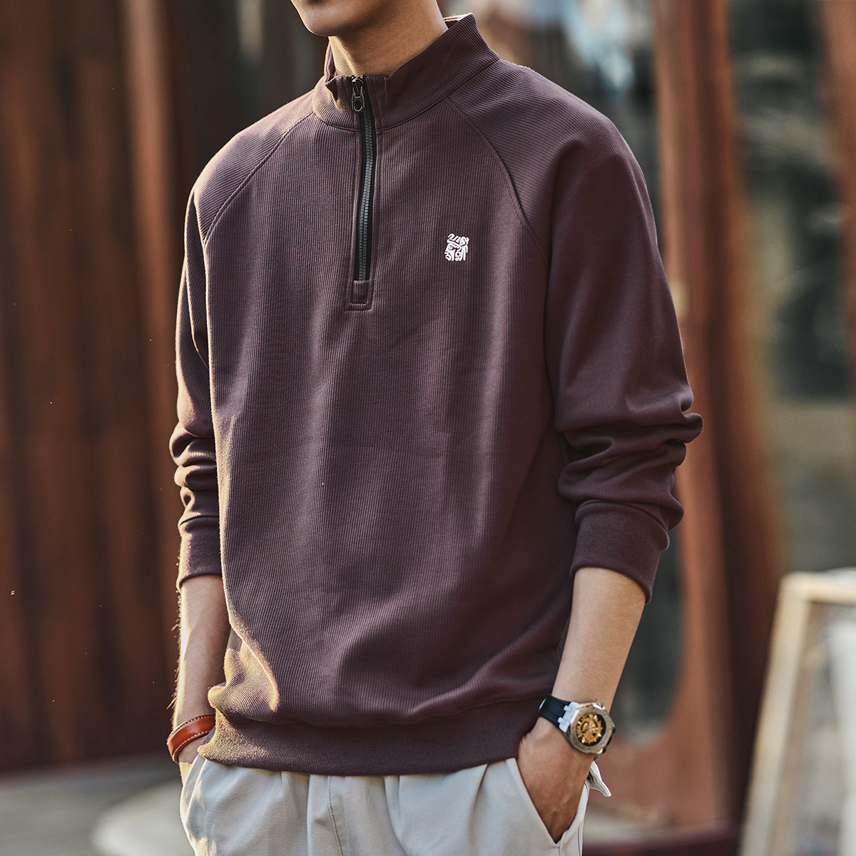 格蓝鹿高端潮牌刺绣半拉链立领卫衣男秋季新款户外休闲上衣POLO衫
