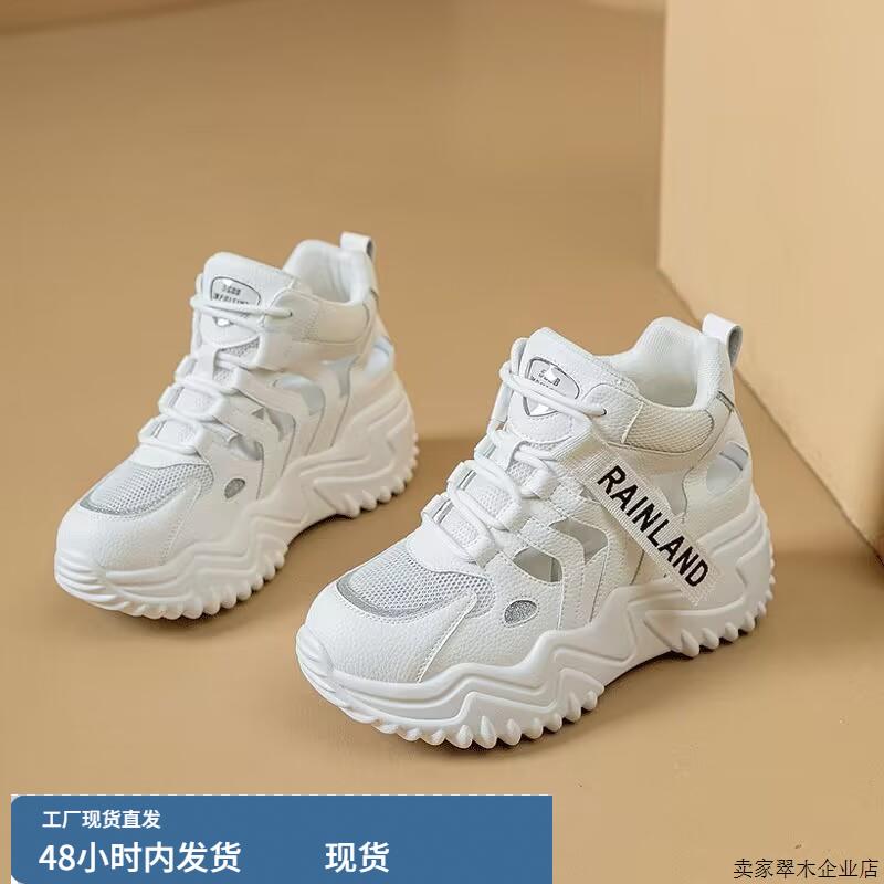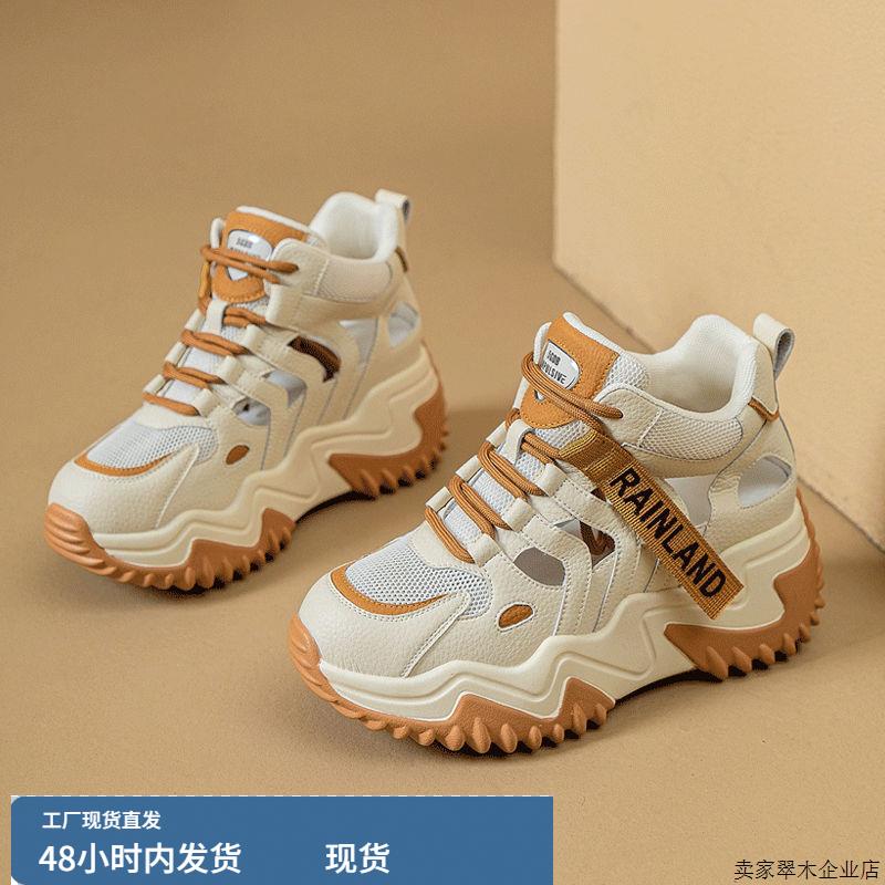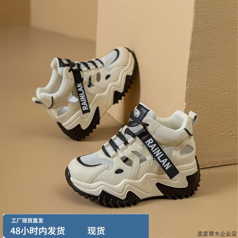 韩版厚底增高老爹鞋女2025春夏新款网面百搭透气镂空运动休闲小白