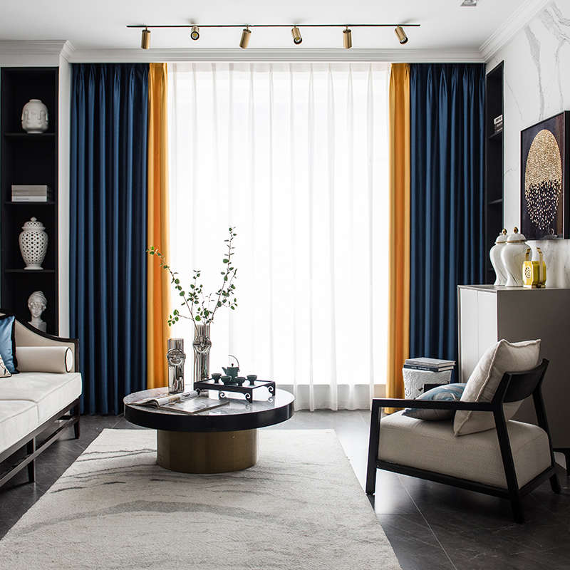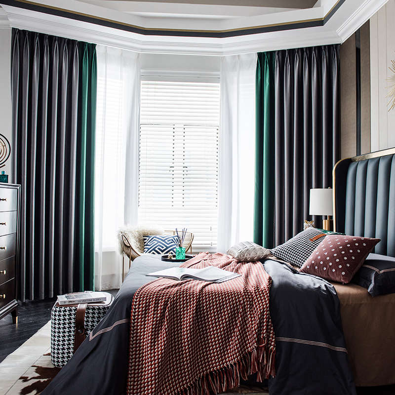 北欧双面肌理轻奢卧室拼接窗帘布料客厅简约现代全遮光2024年新款