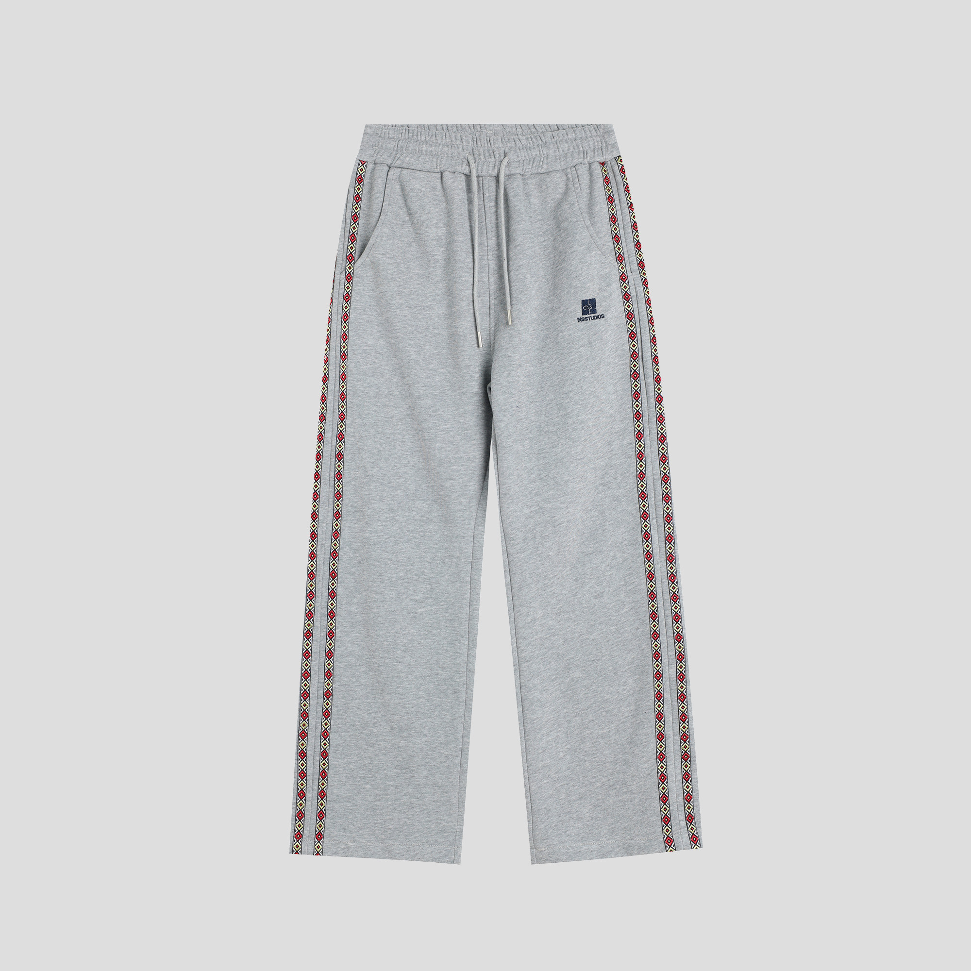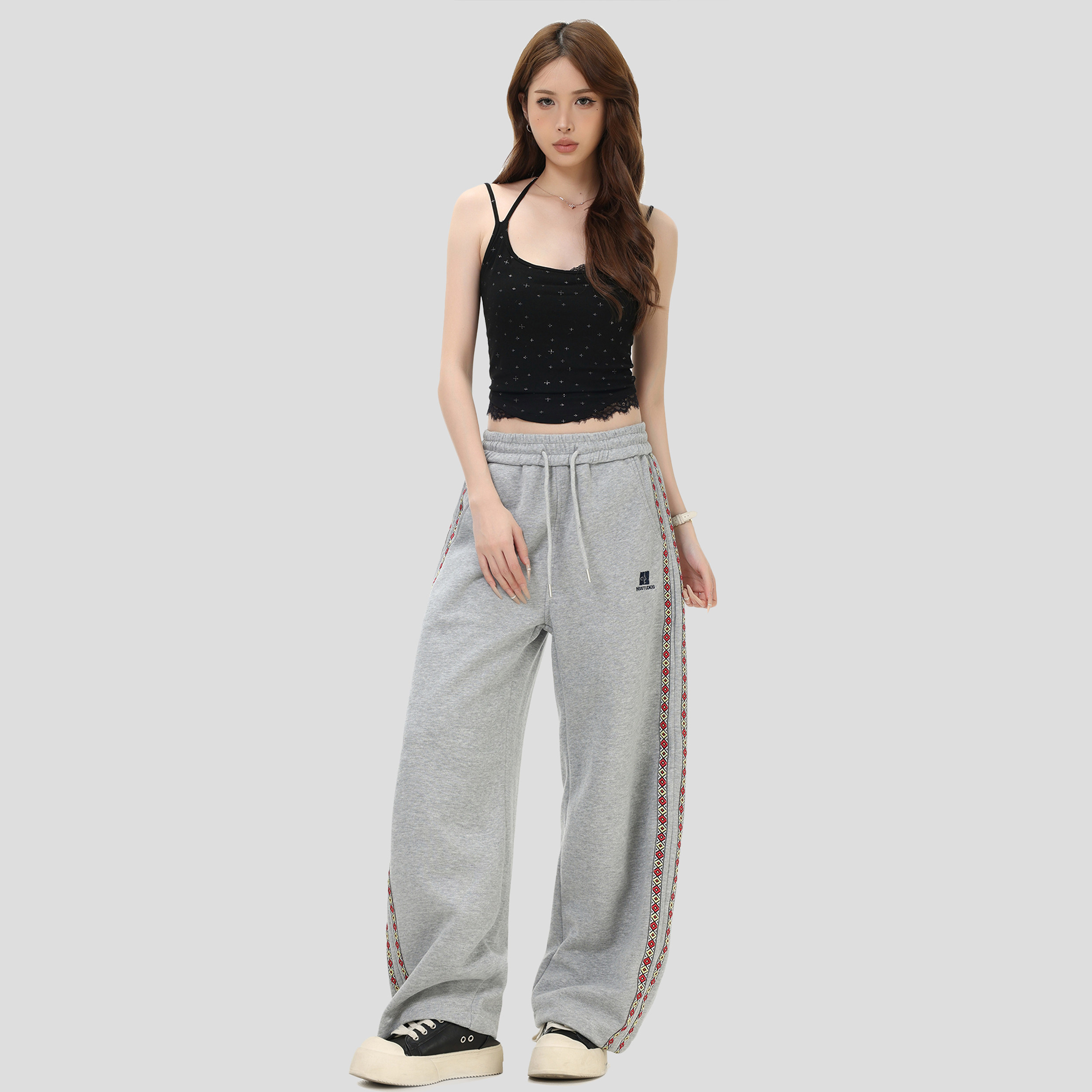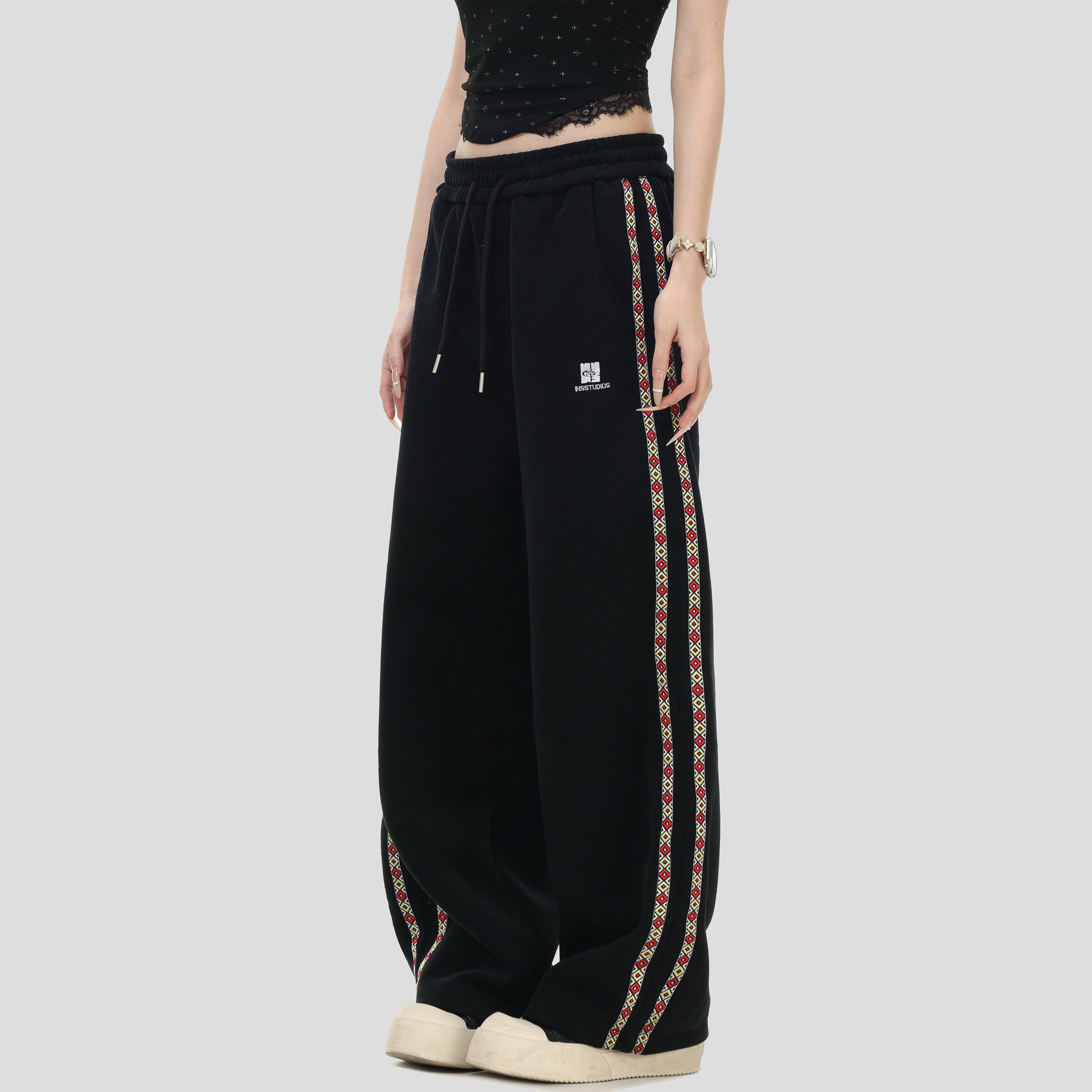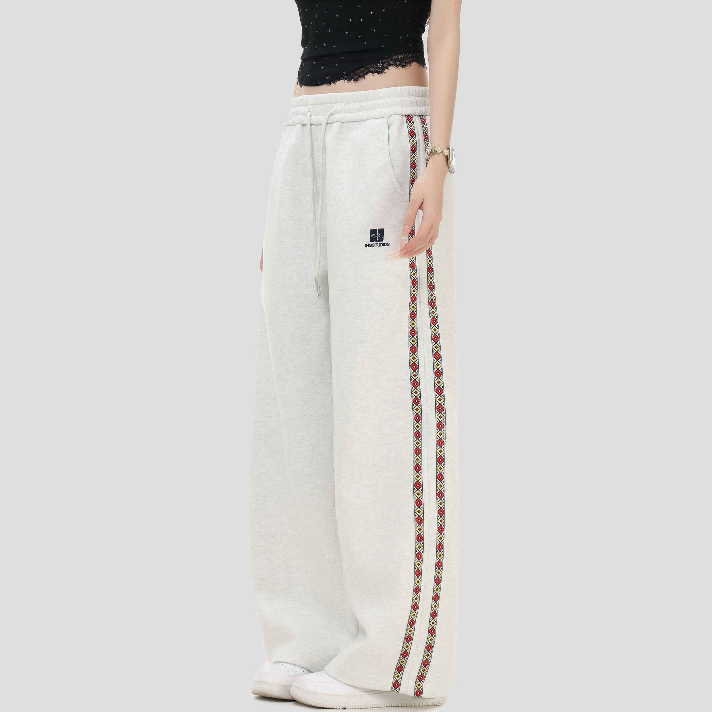 INSstudios 国潮情侣美式复古拼接织带直筒卫裤宽松休闲运动长裤