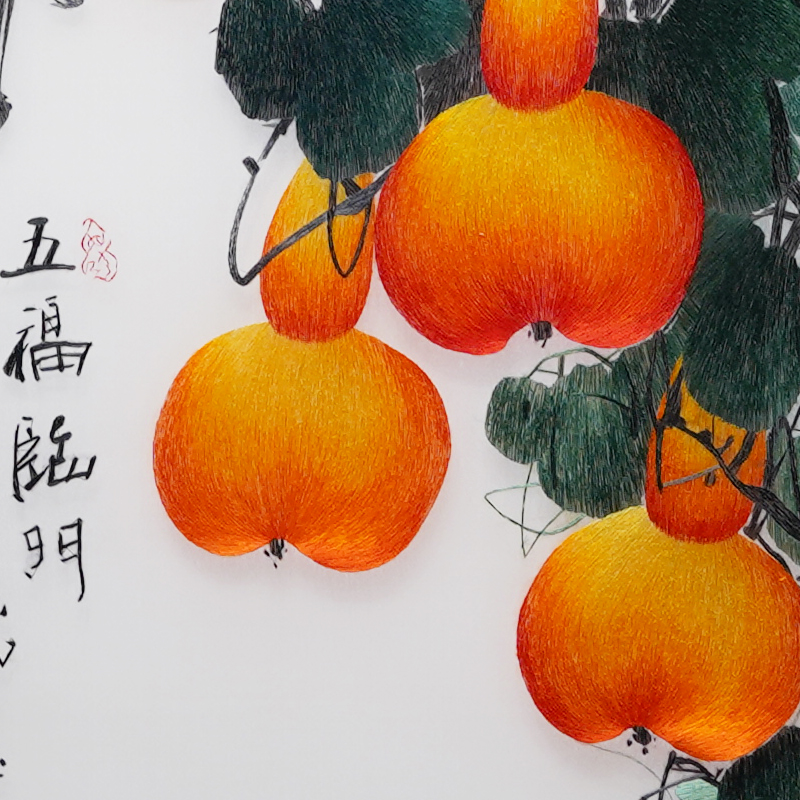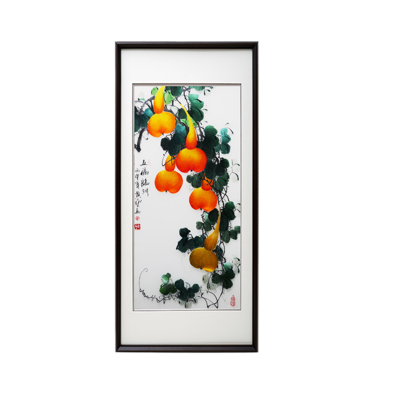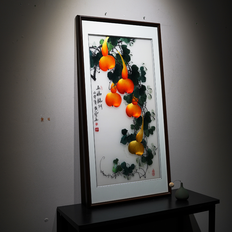新中式五福临门福禄滚滚寓意画玄关走廊挂画纯手工刺绣苏绣装饰画